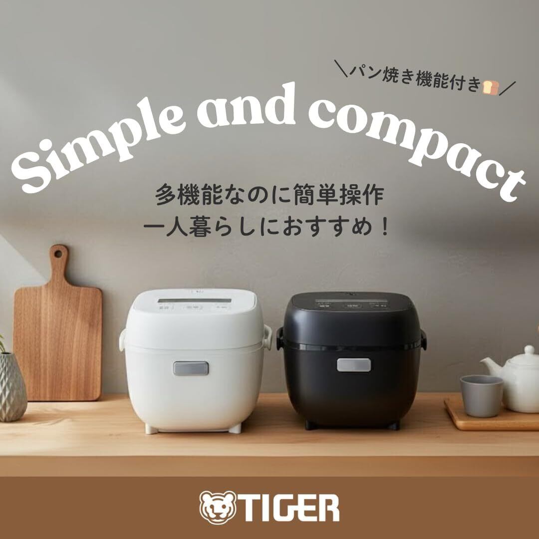 ●商品情報 炊飯容量:3合炊き(0.09~0.54L) サイズ: 約24.7×27.8×19.2cm(幅×奥行×高さ) ※ふた開き時の高さ 38.6cm 本体重量:2.7kg なべ厚:約3mm 最大消費電力:350W 加熱方式:釜包みヒーター 期間: 付属品:しゃもじ/計量カップ/電源コード:(約)1.2m ●メニュー エコ炊き/白米/極うま/早炊き/冷凍ご飯/無洗米/炊込み/玄米/クッキング高温/クッキング低温/パン発酵/パン焼き ●便利に白米をおいしく食べたい、すべての方へ。 ・マイコン機種でもおいしさを追求した「遠赤黒特厚釜(約3mm)」×「釜包み高火力炊きあげ」を採用。高い蓄熱性と遠赤効果で炊きムラを抑え、お米の芯までおいしく炊きあげます。 ●充実の炊飯メニュー ・極うま:白米メニュー炊飯時と比べて、約2倍の吸水時間で贅沢にお米を炊きあげ。 ・エコ炊き:白米メニュー炊飯時と比べて、約23%省エネ。地球にもお財布にも優しい。 ・早炊き:忙しい日に便利。お茶碗1杯分(0.5合)を約24分で炊きあげることが可能です。 ・冷凍ご飯:専用の炊飯プログラムで、レンジ加熱してもハリのあるごはん。 ・炊込み:炊込みごはんやおこわも炊ける。 ・玄米:火かげん、水かげんが難しい玄米をふっくらおいしく炊きあげます。 ●調理メニュー(高温・低温) ・クッキング高温:時短煮込み料理に対応。レトルト食品のあたためにも対応。 ・クッキング低温:温度管理の難しい低温調理にも対応。ローストビーフなどの調理も楽々。 ●コンパクトデザイン&お手入れ簡単 コンパクトで上質感のあるフォルム、インテリアにも優しく寄り添います。 <お手入れ簡単>フラット天面、お手入れシボフレーム、お手入れ部品たったの2点 ●年間消費電力量:39.0kWh/年 ●1回あたりの炊飯時消費電力量:90.1Wh ●1時間あたりの保温時消費電力量:13.0Wh ●1時間あたりのタイマー予約時消費電力量:0.28Wh ●1時間あたりの待機時消費電力量:0.25Wh