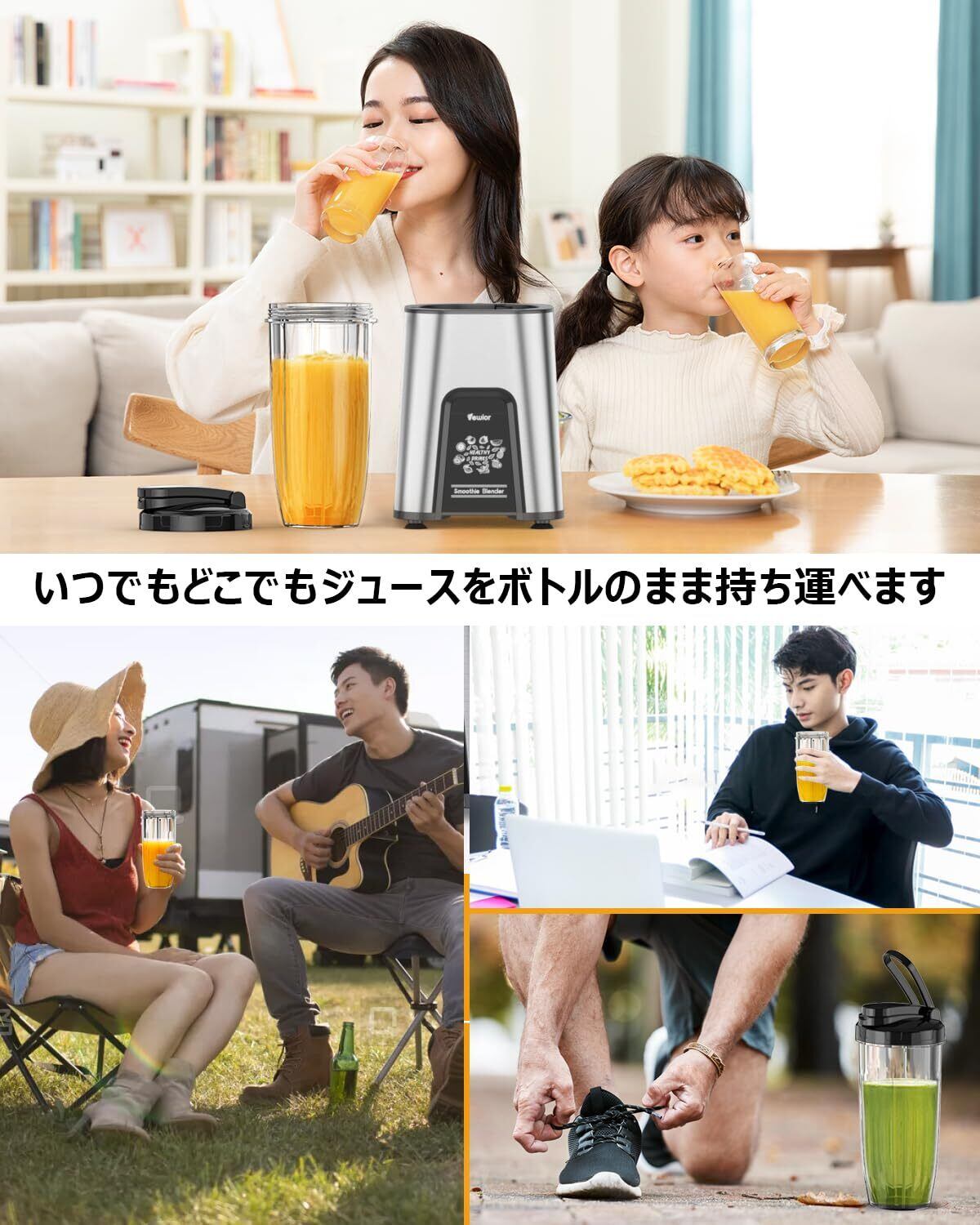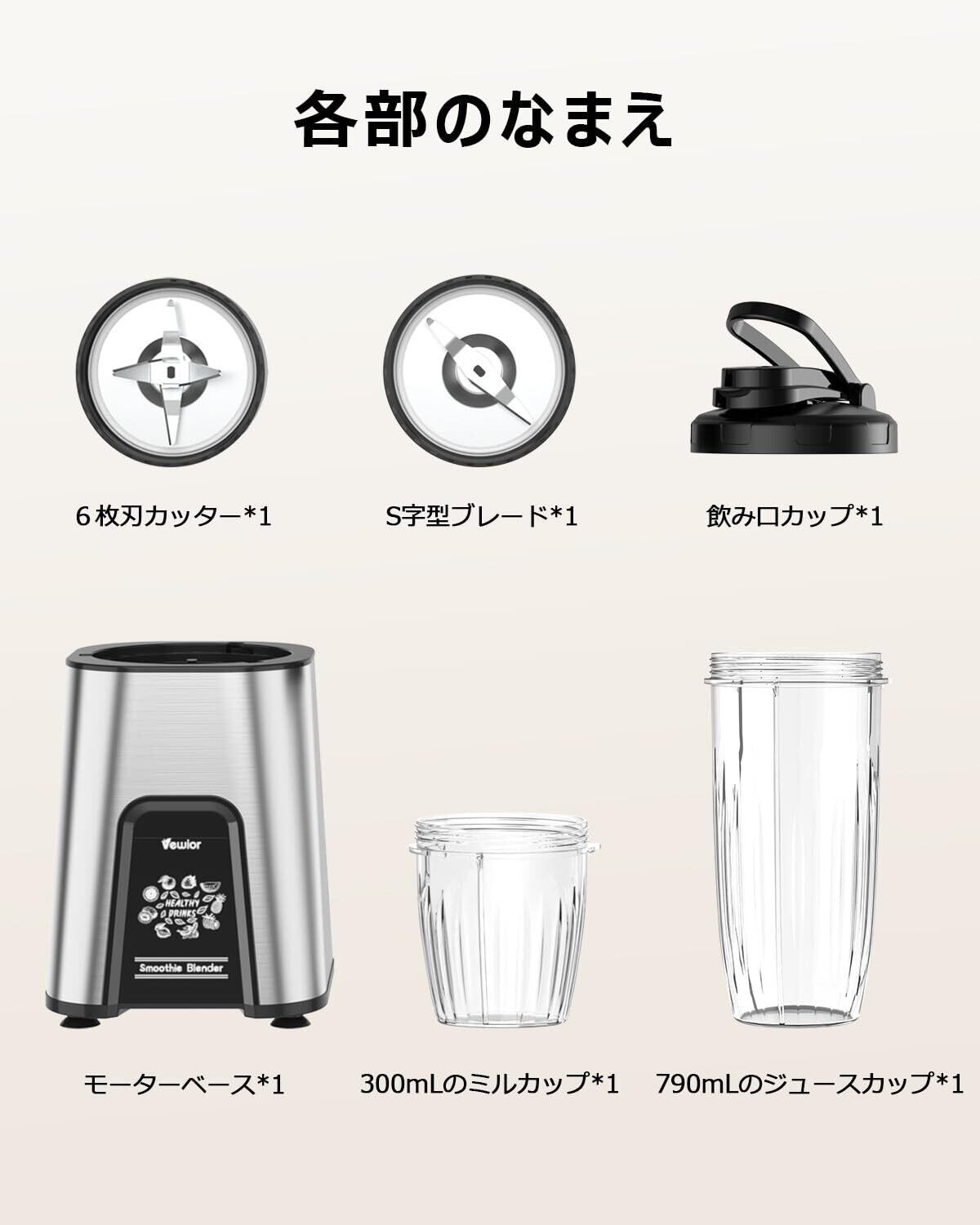 【安全装置&付き】スムージーミキサーは温度保護機能と底部の出風口のダブル保険で、過熱のリスクをカットされます。また、本体が正しくセットされないと運転しない安全機能付きます。土台に吸盤が付いているので、安定した状態で調理できます。パッケージ:モーターベース*1、790mLのジュースカップ*1、飲み口カップ*1、6枚刃カッター*1、日本語マニュアル*1、合わせて5点のセット付きます。キッチン/アウトドア/旅行/出張/ジム/オフィス様々な場所で楽に使えます。友達や家族へのプレゼント、誕生日、クリスマスギフトなどに最適です。ご購入日より24ヶ月のサポーターを提供します。万が一製品に品質問題がある場合、ご遠慮なくにご連絡いただきますようお願い申し上げます。期間内故障が発生しましたら、新品再送・全額返金と対応させていただきます。連絡ステップ:[アカウントサービス]-[注文履歴]-[出品者に連絡する]の方でご連絡ください。