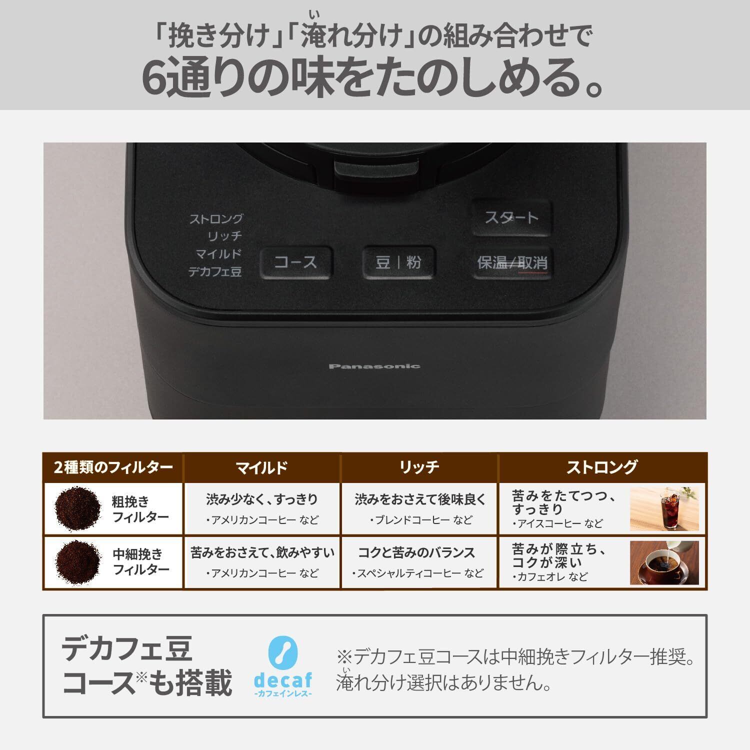 パナソニック コーヒーメーカー 全自動 ミル付き 沸騰浄水機能 デカフェ豆コース搭載 ブラック NC-A58-K