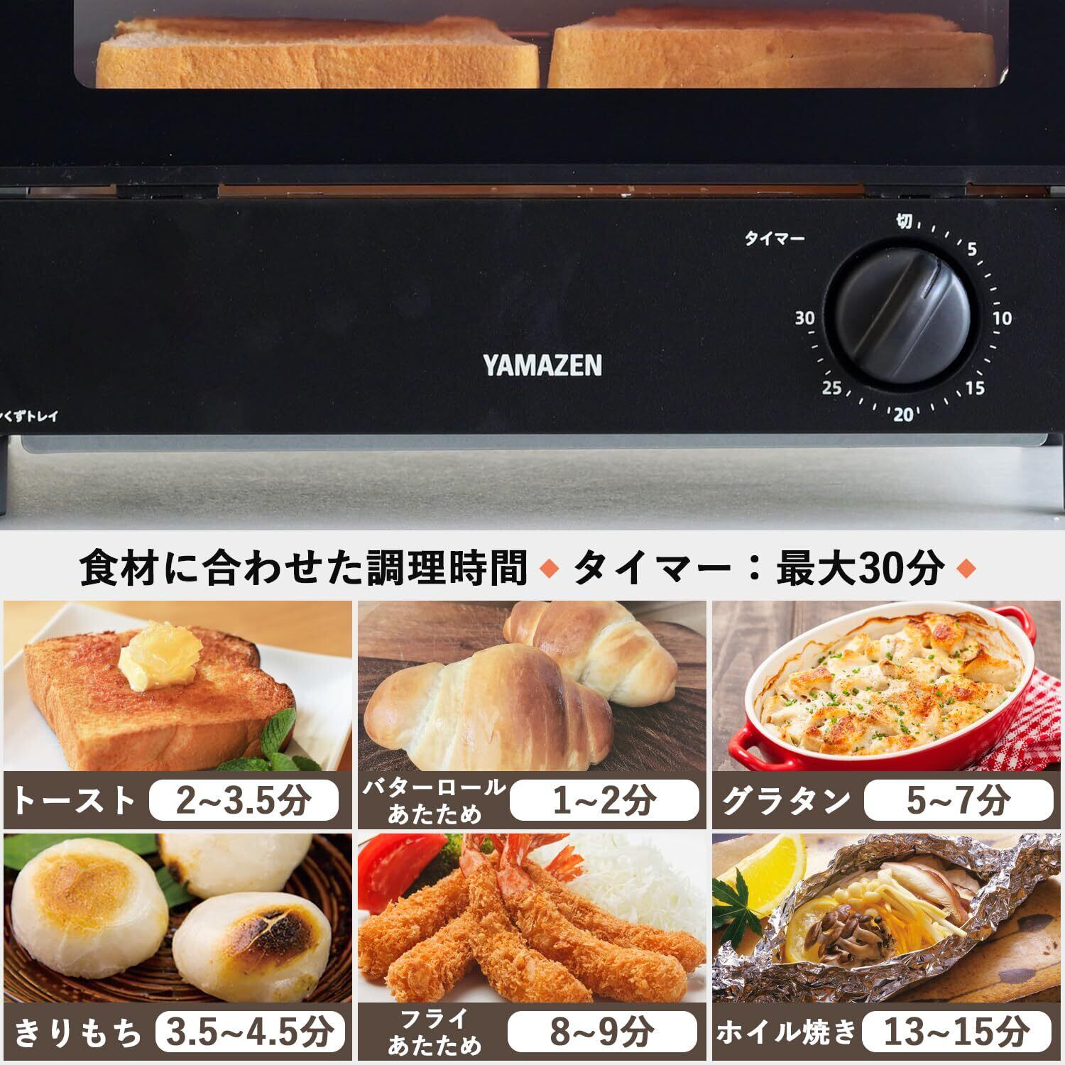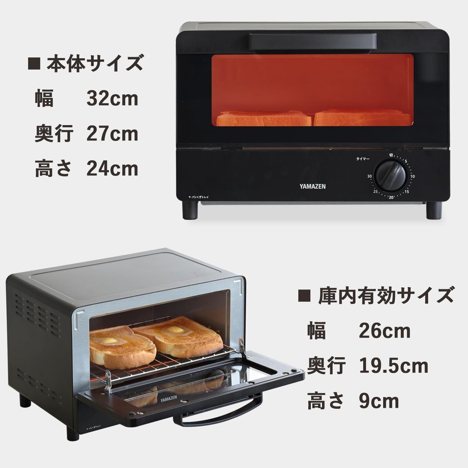 トースター オーブントースター 一人暮らし 二人暮らし トースト 2枚焼き 山型パン対応 1000W タイマー30分 受け皿付き ブラック YTRB-S100(B)