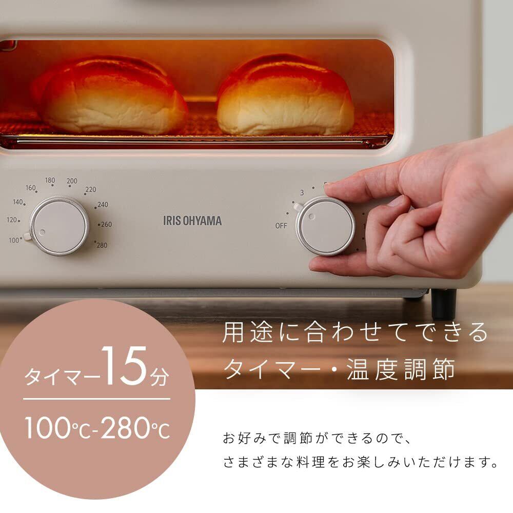 【用途に合わせてできる温度調節】タイマーは最大15分までで、温度は100~280℃まで調節可能です。さまざまな料理に対応できるため、幅広くお楽しみいただけます。