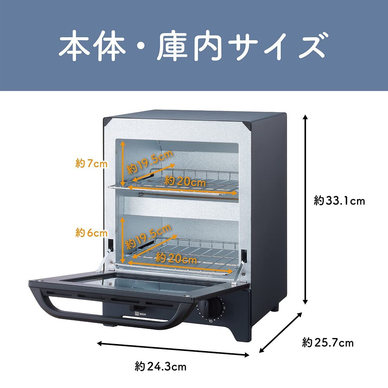 本体サイズ:幅24.3×奥行25.7×高さ33.1cm / 庫内サイズ:上段:幅20×奥行19.5×高さ7cm・下段:幅20×奥行19.5×高さ6cm