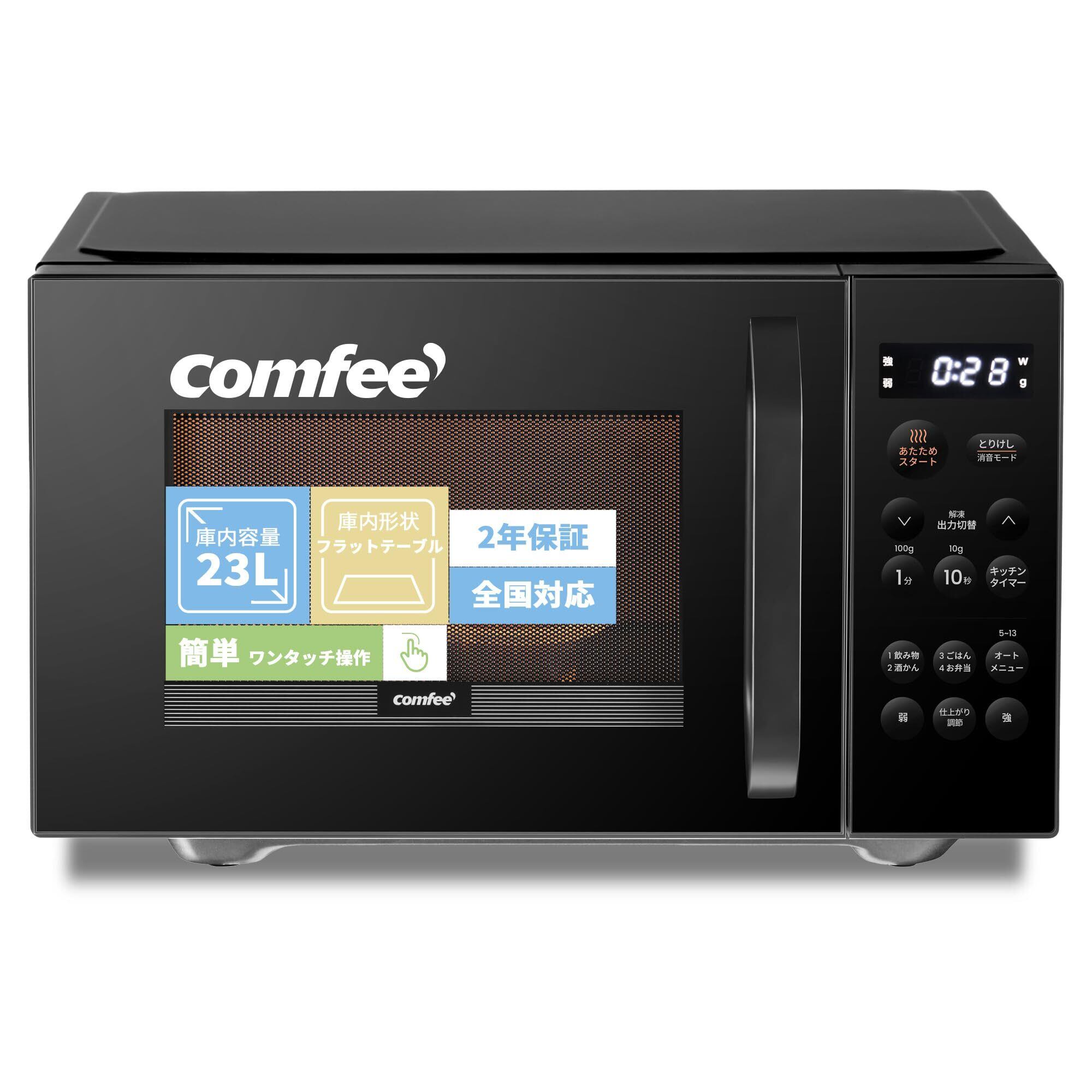コンフィー(COMFEE') 電子レンジ 23L 大容量 単機能レンジ |フラットテーブル ヘルツフリー 全国対応 30cmワイド開口で大弁当対応 |オートメニュー13種搭載 シンプルボタン 簡単操作 仕上がり調整|コンパクト設計 液晶画面で見やすい|新生活 新社会人 一人暮らし 二人暮らし ファミリー ブラック CMO-EMP032XFPG-BK