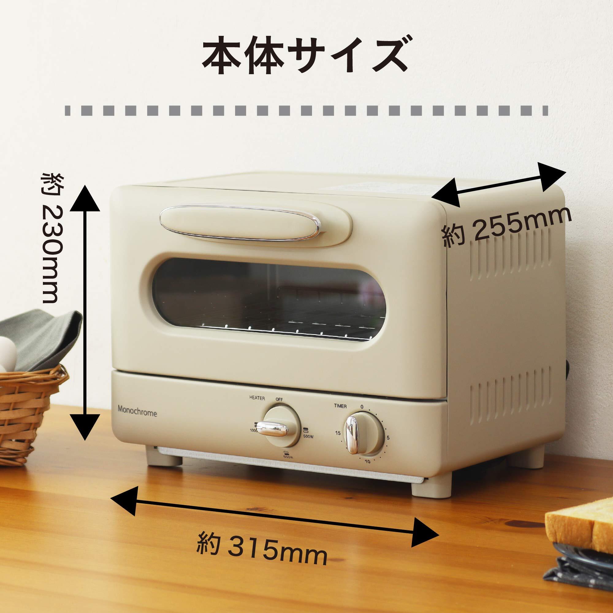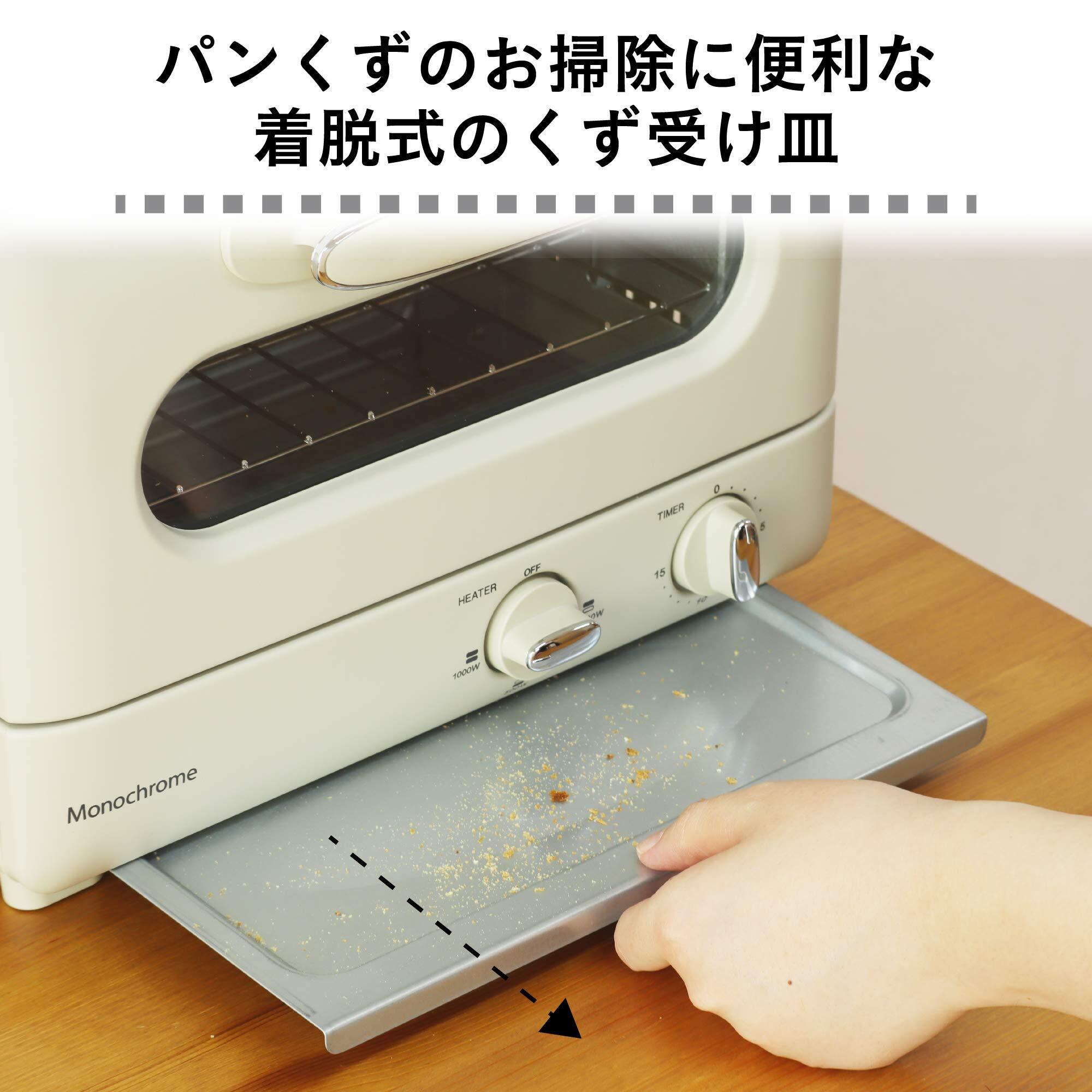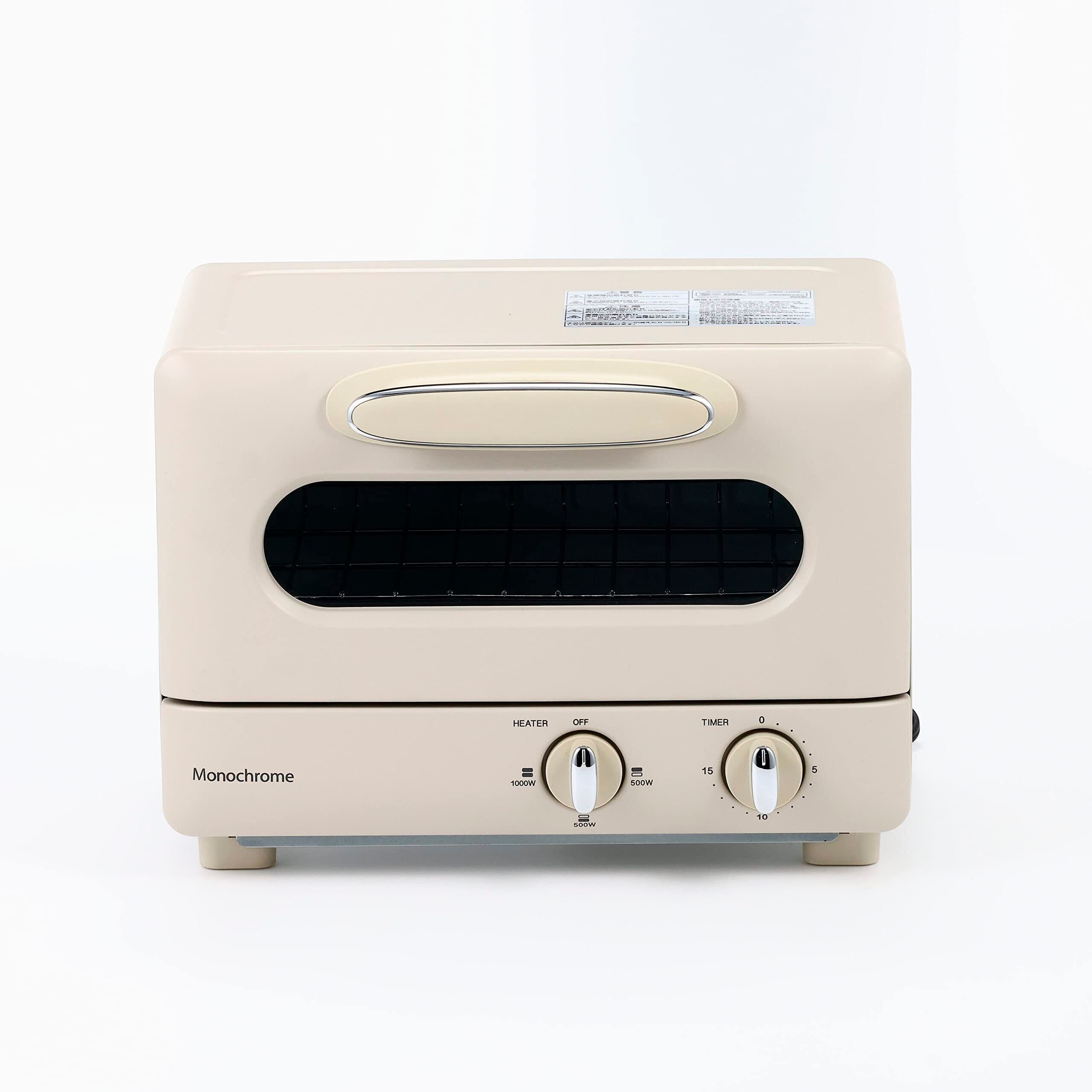 モノクローム(Monochrome) コイズミ オーブントースター 1000W ヒーター3段階切替 15分タイマー パンくずトレー付き レトロ ホワイト MOS-1028/W
