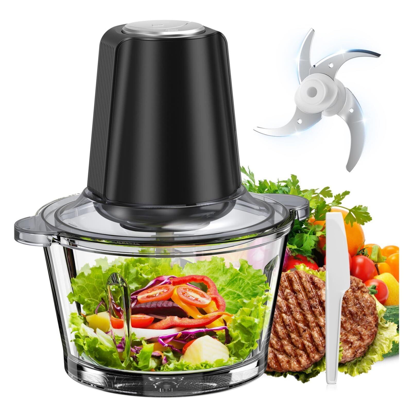 フードプロセッサー 2L大容量 CEUKOZ 1台5役 (刻む・混ぜる・潰す・砕く・粗おろし) 500Wハイパワー 2段階スピード 4枚刃カッター フードチョッパー 氷も砕ける ブレンダー 離乳食 電動 挽肉 みじん切り フードミキサー 人気 家庭用 洗いやすい