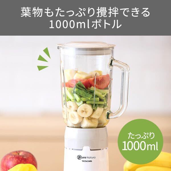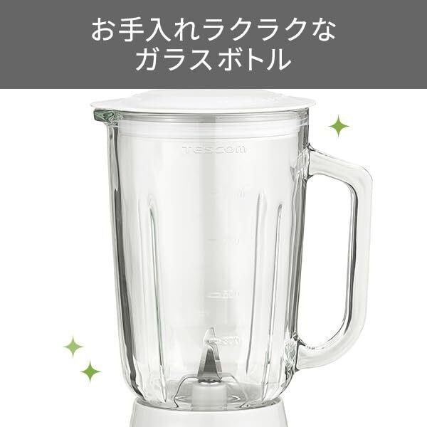 テスコム ミキサー ジュースミキサー 1000ml <冷蔵庫の角氷を細かく砕ける大型刃> ガラスボトル コンパクト収納 ラク抜きプラグ ホワイト TMX20A-W
