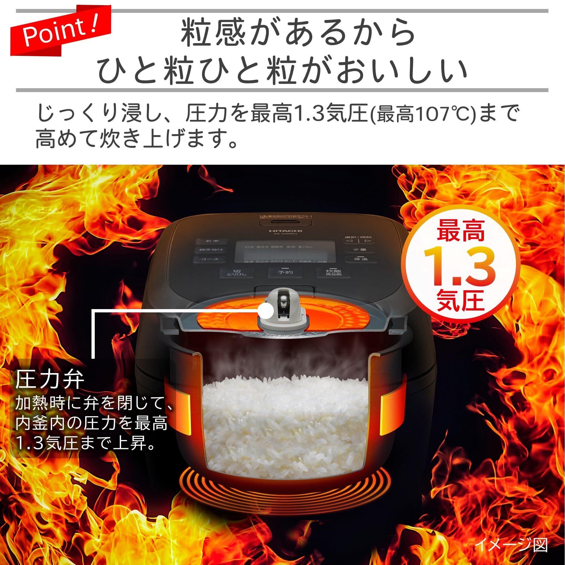 ●圧力を1.3気圧まで高めて、炊き上げる「圧力炊き」