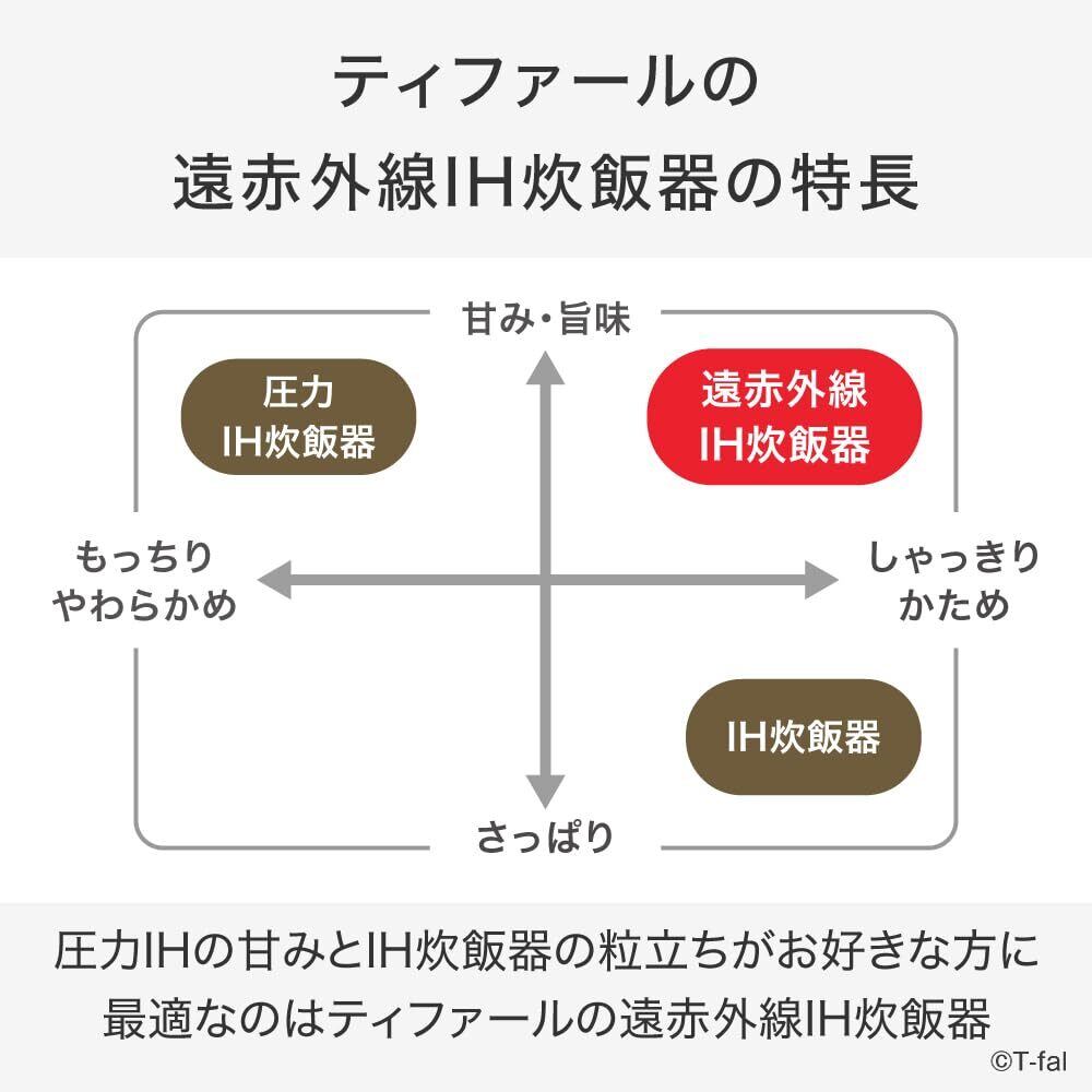 ティファール独自の蓋からの遠赤外線と、本体に張り巡らせた6層からなるIHコイル(3DIH)が、内釜をしっかり包み込み加熱。