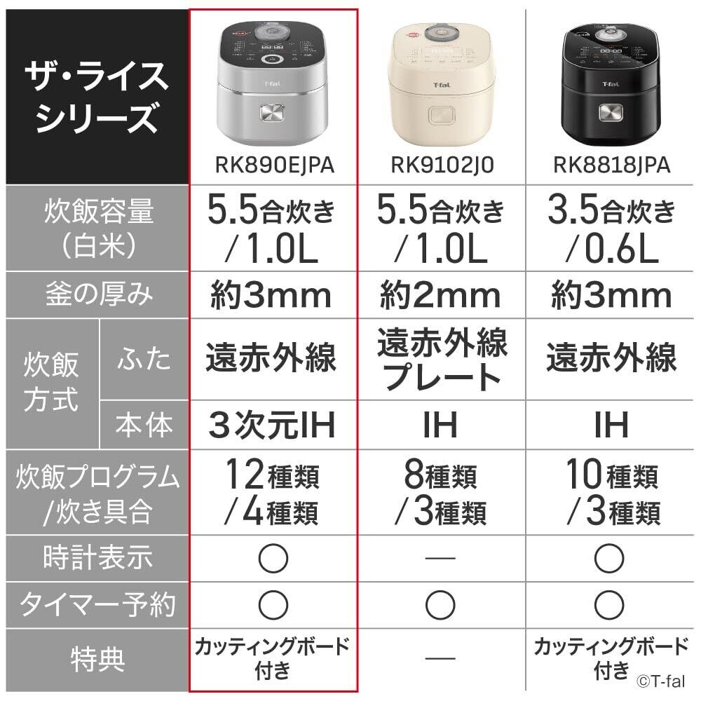ティファール 炊飯器 5.5合 遠赤外線 高火力3次元IH お米の芯まで一気に直火炊き 粒立ち ハリ 甘み もち麦 発芽玄米 長粒米対応 シルバー RK890EJPA