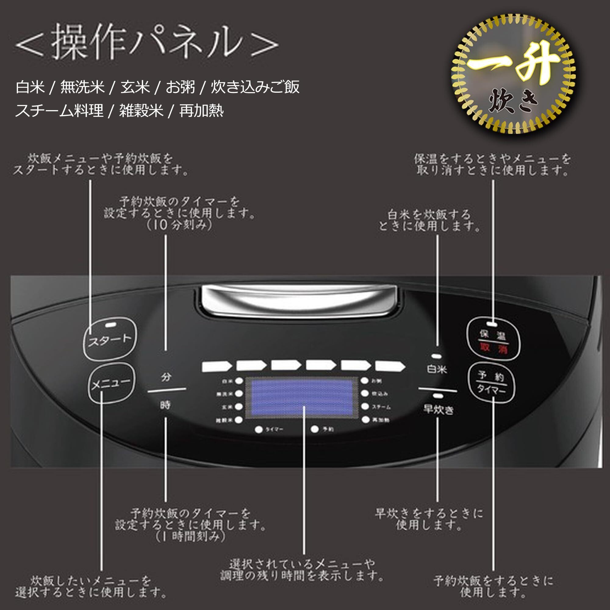 多機能炊飯器 一升 マイコン式 ブラック 極厚釜 10合 8種類の充実のメニュー(白米・無洗米・玄米・お粥・炊きこみご飯・スチーム調理・雑穀米・再加熱) 24時間保温 予約機能 一人暮らし サポート 調理鍋 炊飯器 独り暮らし 3 5.5 1 独り暮らし ih 合 升 d000