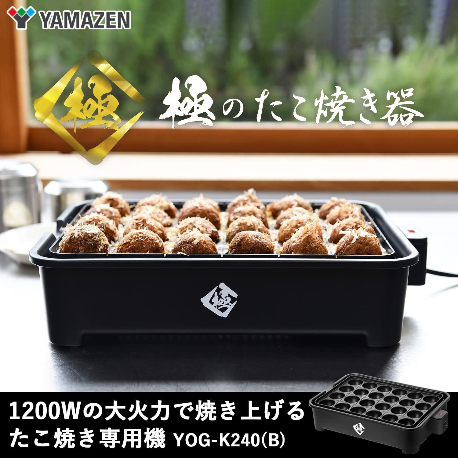 たこ焼き器 24穴 極のたこ焼き器 1200W 着脱式プレート フッ素コーティング 簡単お手入れ 串ガイド付 ワンタッチ操作 YOG-K240(B)