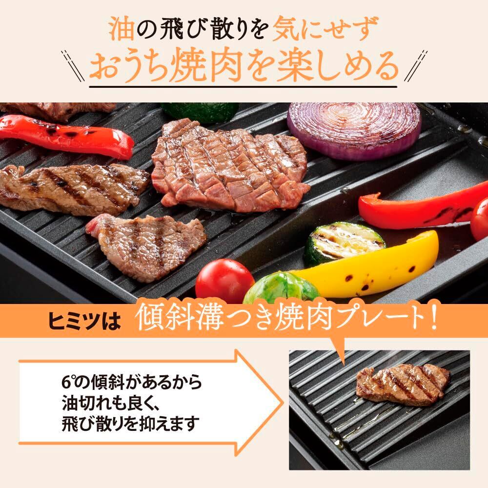 プレートの溝が傾斜していて落ちた脂が流れやすい「傾斜溝つき焼肉プレート」