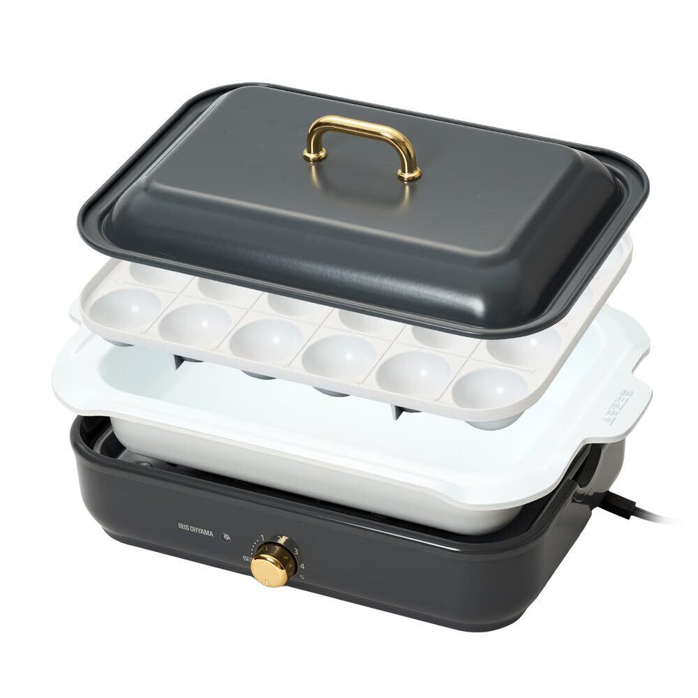 アイリスオーヤマ ホットプレート コンパクト 着脱式 温度調節機能付き たこやき器 深鍋 プレート 2枚 1000W 簡単お手入れ サーモスタット機能 洗いやすい おしゃれ 付き PHP-1002TC グレー