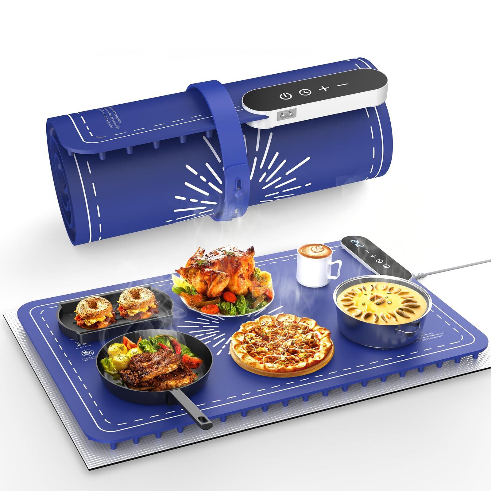 保温プレート 高速電気保温トレイ 9段階の温度調整40℃〜120℃ フードウォーマー 多機能食品断熱ボード チャイルドロック 折りたたみ式 自動シャットオフ 食品温暖化マット レストラン/パーティー/イベント/家族ディナーにぴったり お手入れ簡単