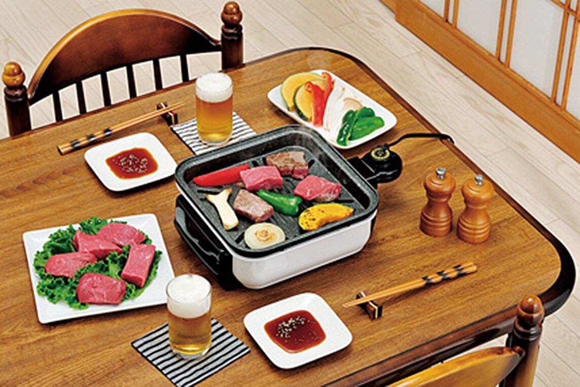 本体兼用水受け皿になっているので、煙が出にくくご家庭でも安心。