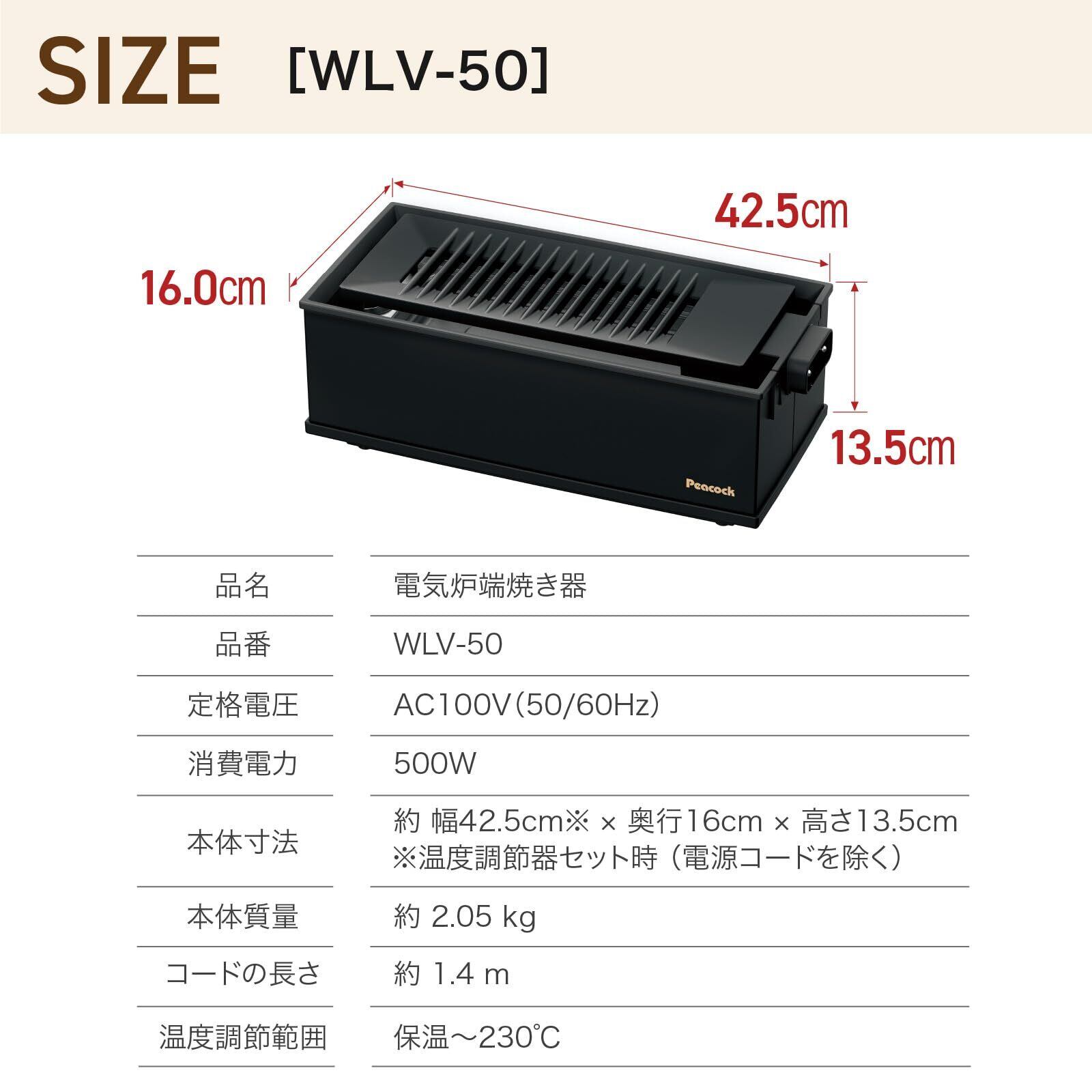 ピーコック DINING 炉端 電気炉端焼き器 電気グリル 電気調理器 コンパクト 温度調節 グリル 卓上 ホットプレート 海鮮 焼肉 焼き鳥 一人用 1人用 2人用 ブラック WLV-50 B