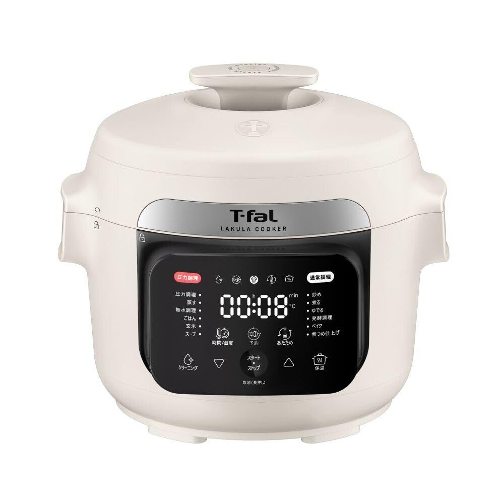 ティファール 電気圧力鍋 3L 2~4人用 時短 圧力/炒め/無水/煮る/蒸す/スープ/ベイク 予約調理 レシピブック付き アイボリー CY380AJ0