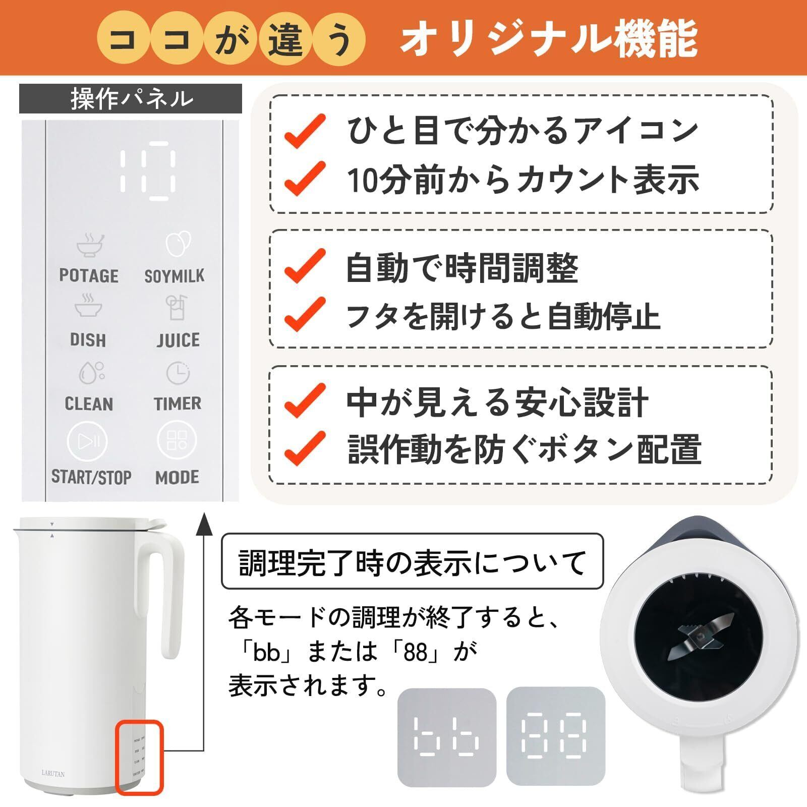 LARUTAN ポットクッカー スープメーカー 豆乳メーカー 自動調理ポット 全自動調理器 600ml 1台4役 予約 保温 離乳食 スムージー レシピ付 (ホワイト)