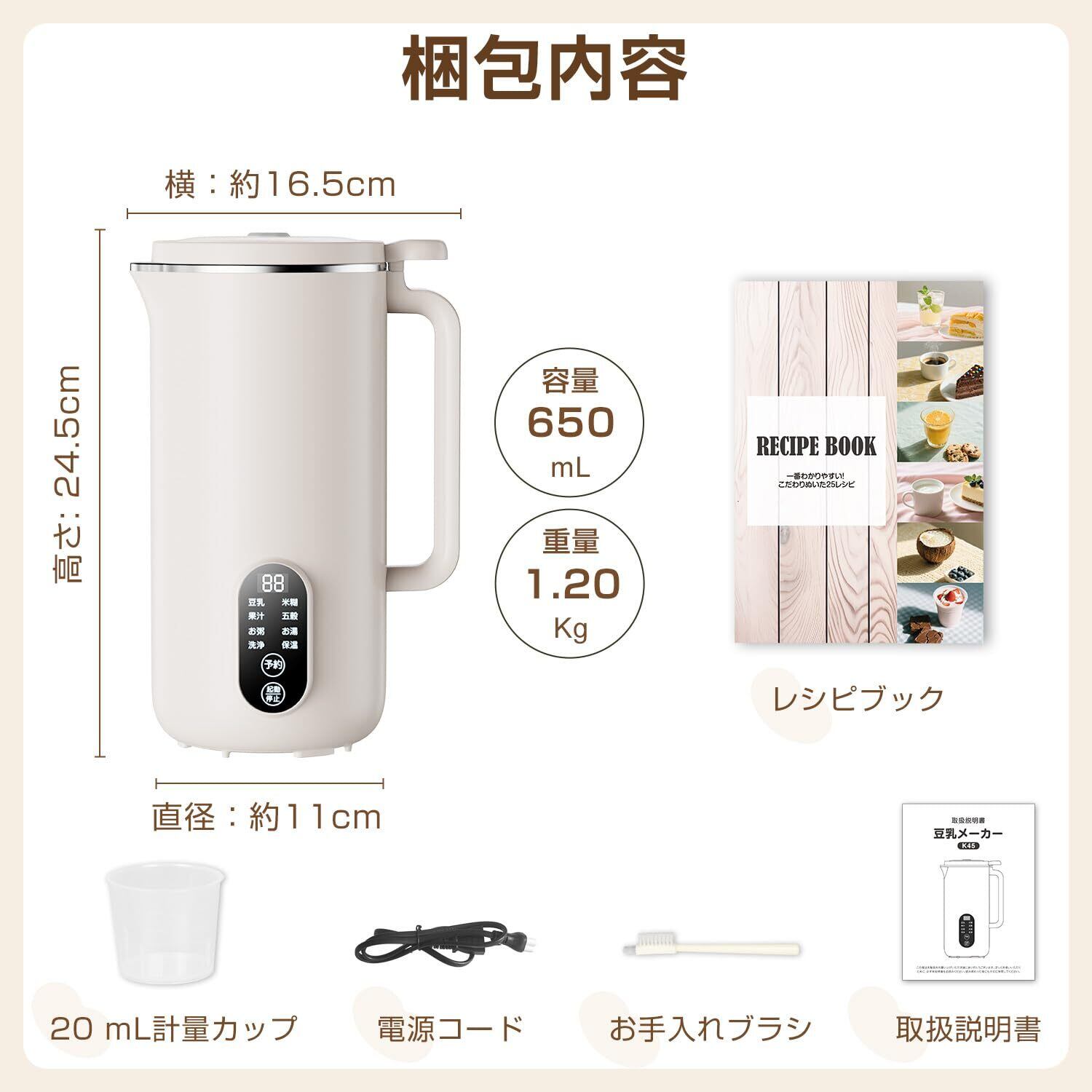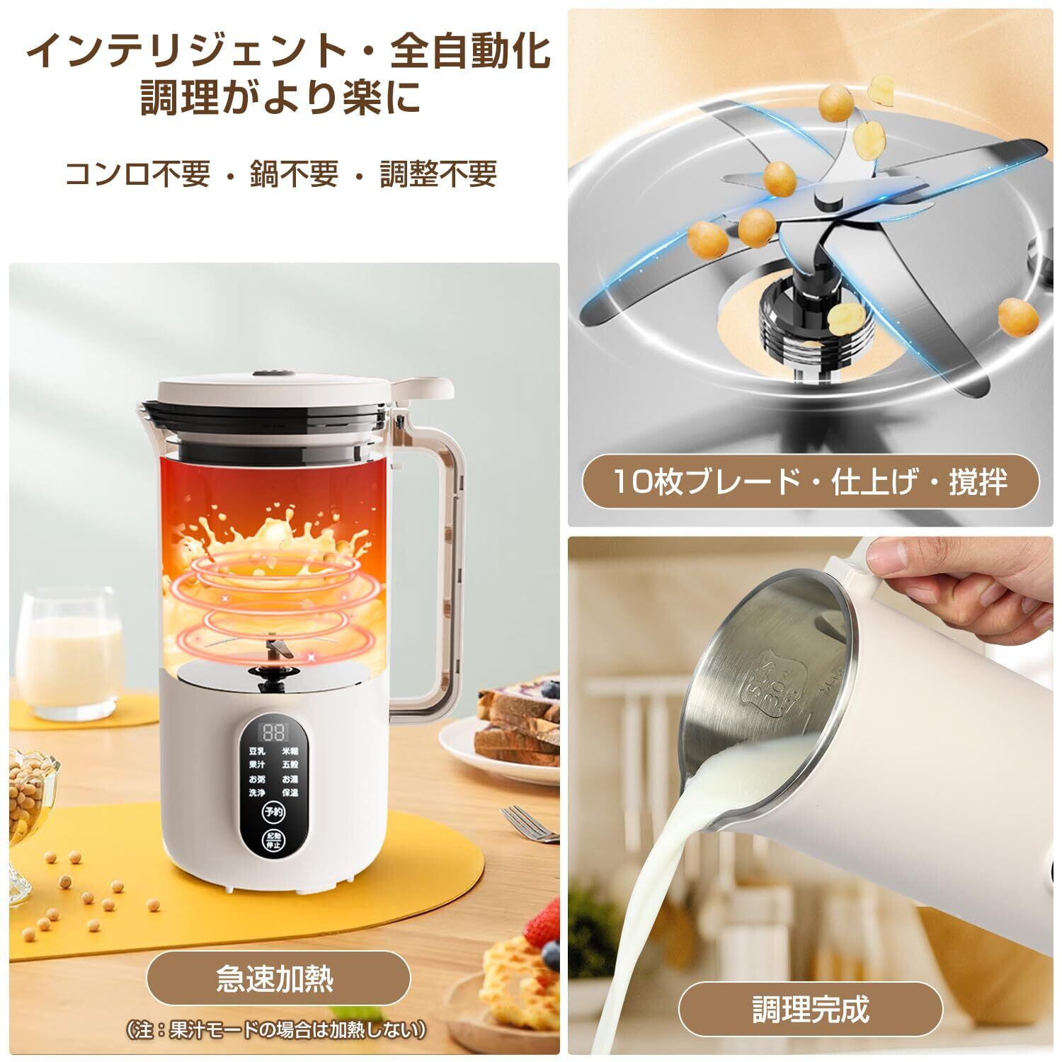 Moon River 豆乳メーカー スープメーカー 多機能ジューサー 全自動豆乳機 650ML大容量 1-3人使用 乾燥豆でもOK 濾過不要 操作簡単 残滓がない 12H予約機能 業務用/家庭用 全自動調理ポット 攪拌機 ジューサ 自動洗浄機能 304ステンレスブレード10枚 豆乳 ジュース 離乳食 ハーブティー 日本語説明書付き (ベージュ)