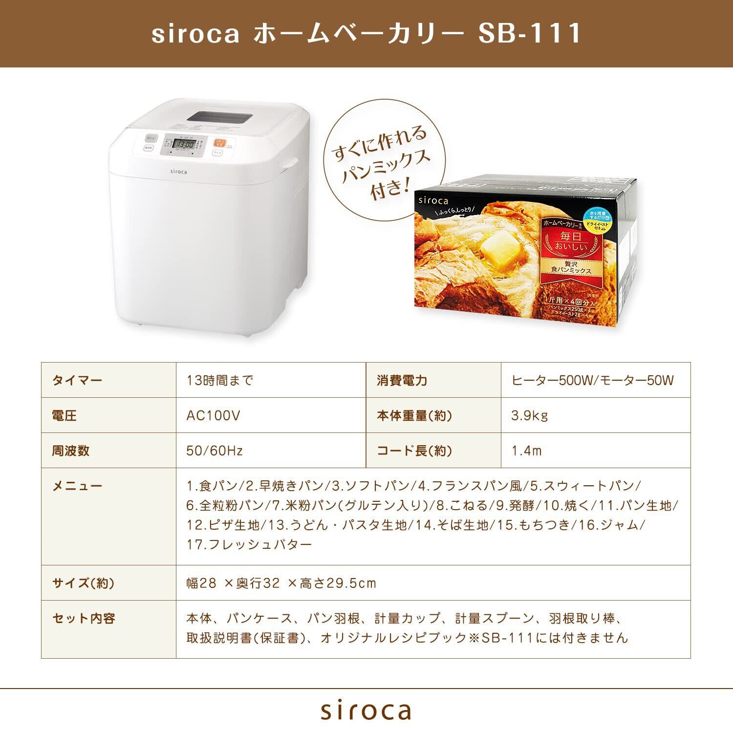 シロカ 全自動ホームベーカリー SB-111 ホワイト 贅沢食パンミックス(1斤×4袋) SHB-MIX3100付き特別セット|ホームベーカリー パン焼き機 全自動 17メニュー搭載 パン 2斤 餅つき機 もちつき機 ピザ生地 うどん・パスタ生地 そば生地 ジャム バター タイマー予約 コンパクト ギフト プレゼント