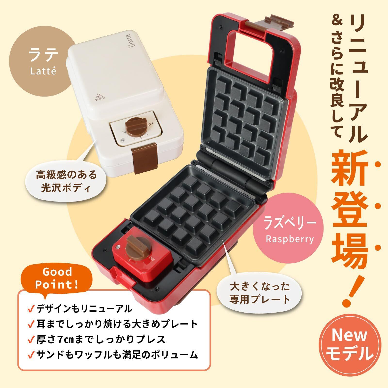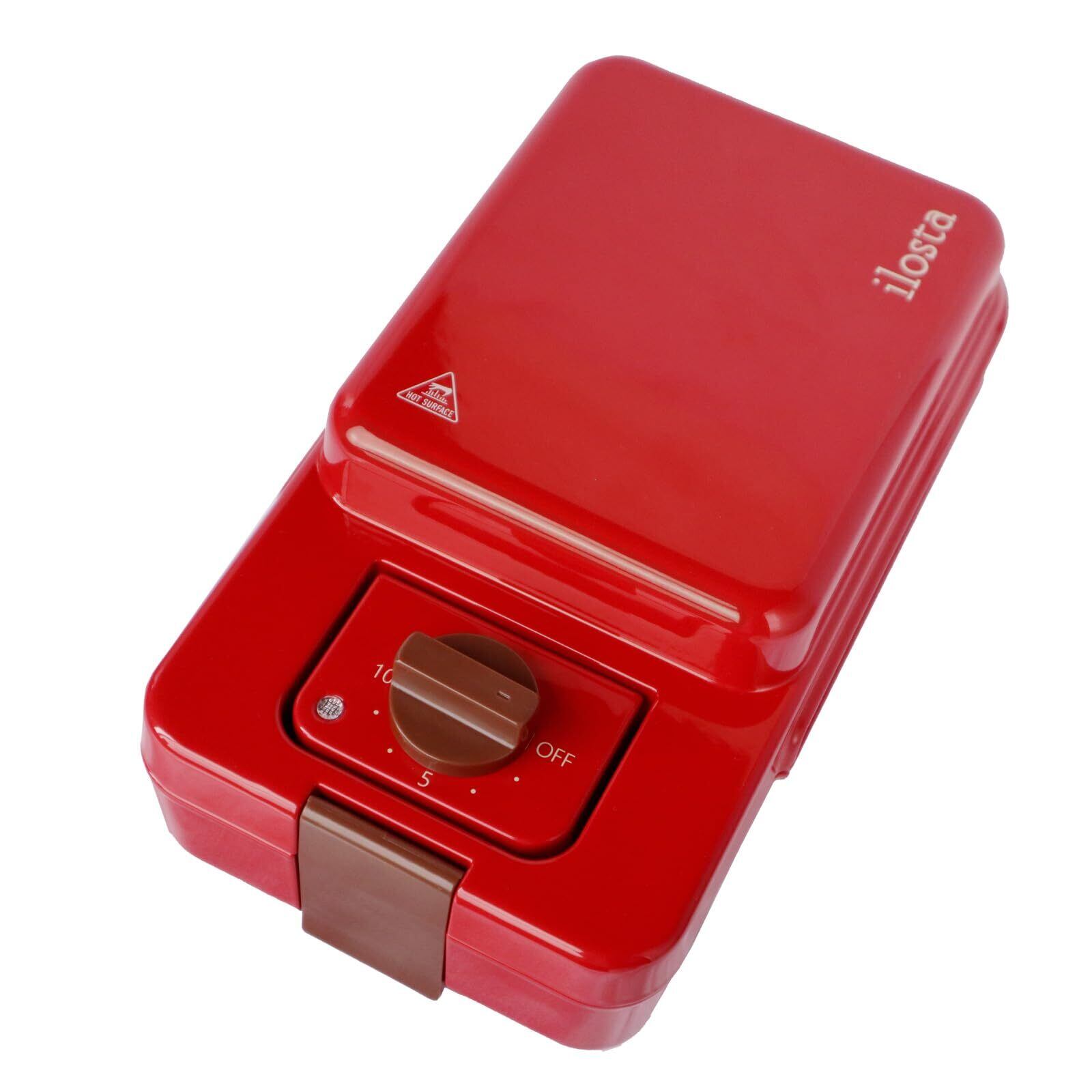 ホットサンドメーカー ワッフル 電気 洗える 着脱式 お手入れ簡単 音の出るタイマー機能 最大10分 焼き型2種 コンパクト収納 レトロデザイン フッ素樹脂 一枚 一人暮らし ilosta (イロスタ) メーカー公式 (ラズベリー)