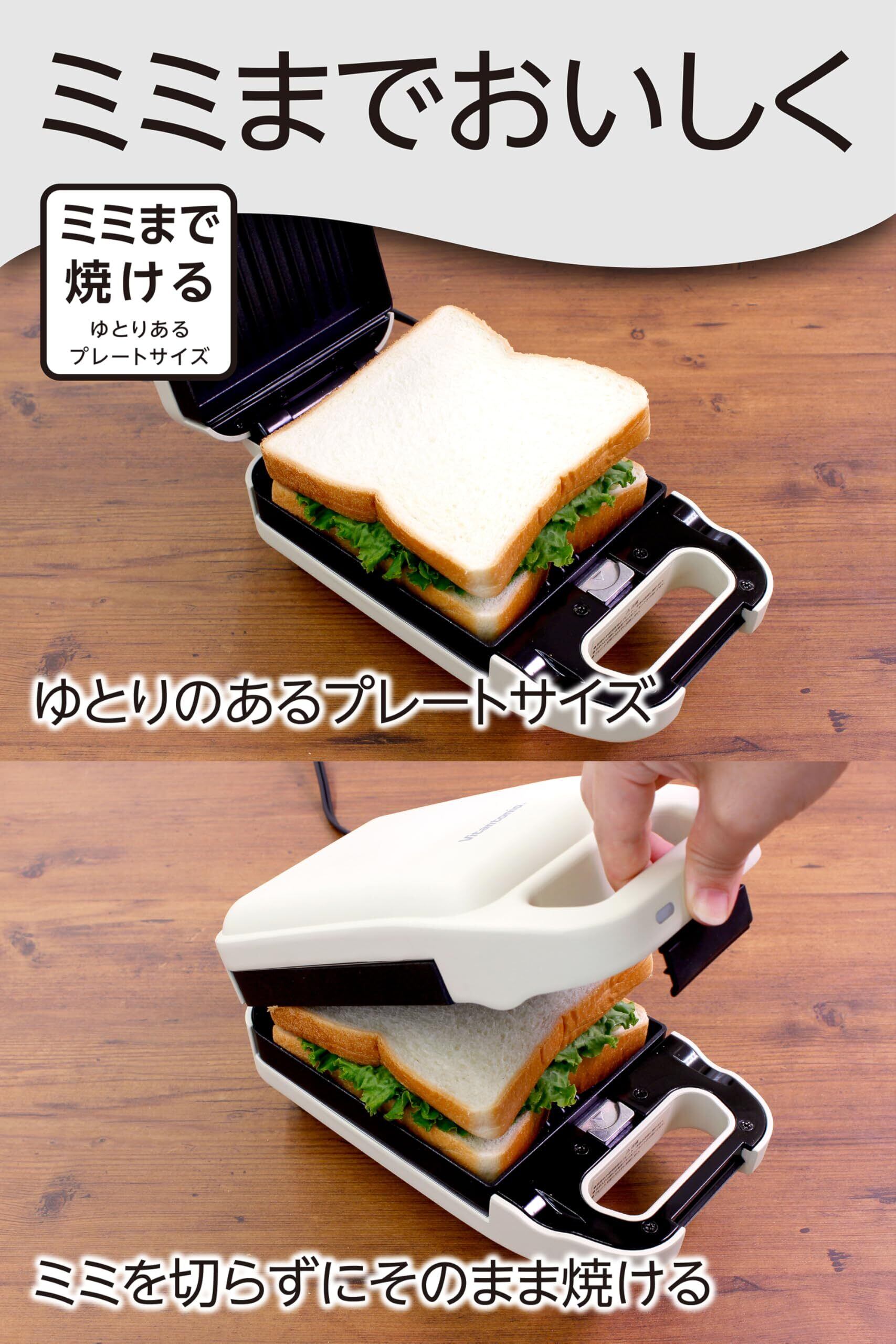 【耳付きホットサンドが焼ける】食パンのミミを切らずにそのまま焼けるゆとりのあるプレートサイズで、具だくさんのホットサンド、イングリッシュマフィンはもちろん、厚みがあるフレンチトーストもふわふわとろとろの仕上がり。