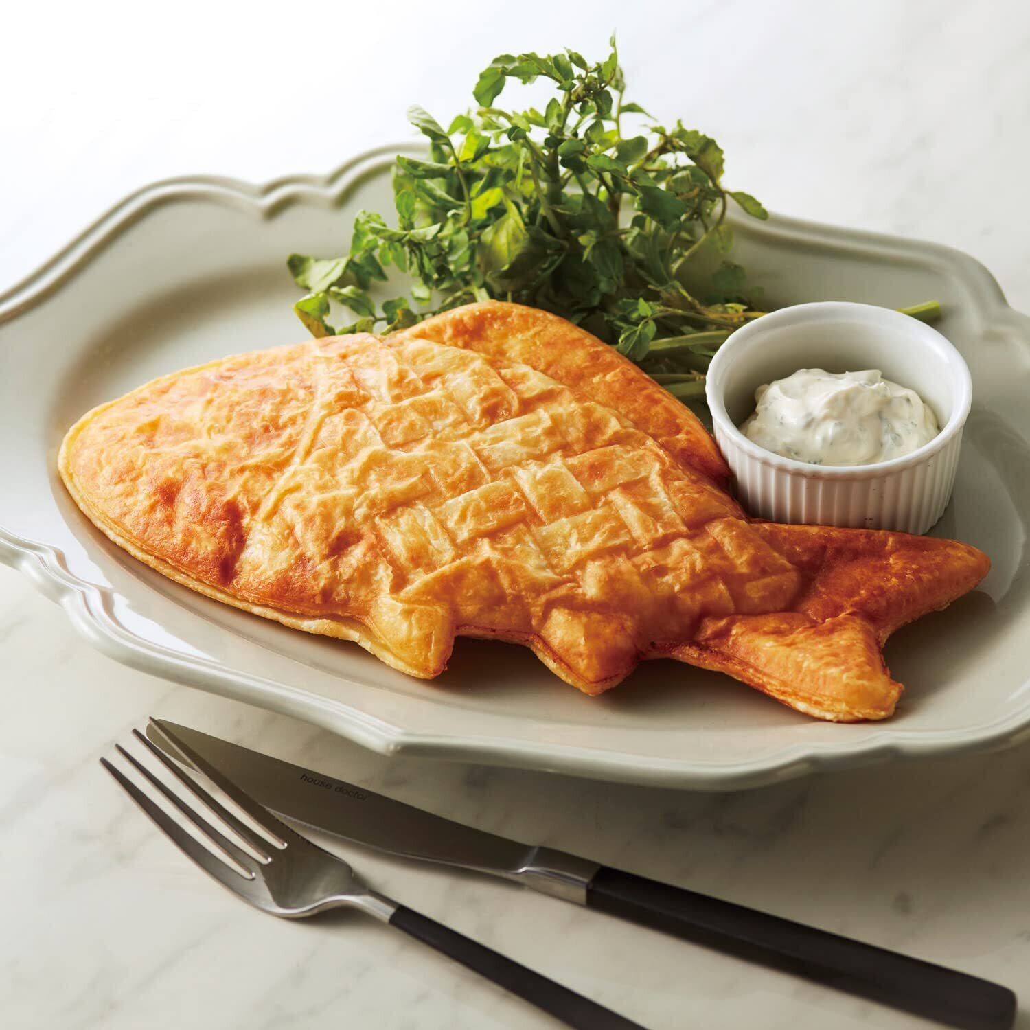 洋風おさかなモチーフのたい焼きが作れる 専用オプションプレート。「BRUNO ホットサンドメーカーダブル」専用のおさかなプレートです。ヨーロッパの港町の看板に描かれるようなおさかなモチーフのたい焼きが作れます。大きなおさかなが1匹作れるので、フィッシュパイなどのお食事メニューを作るのに最適です。