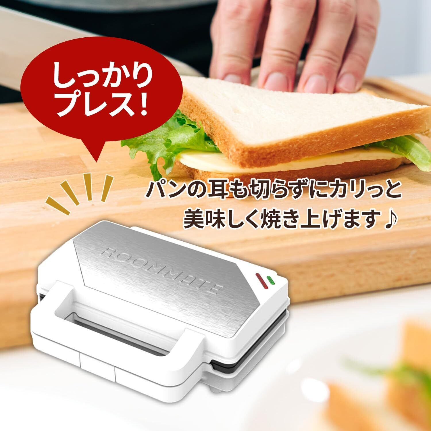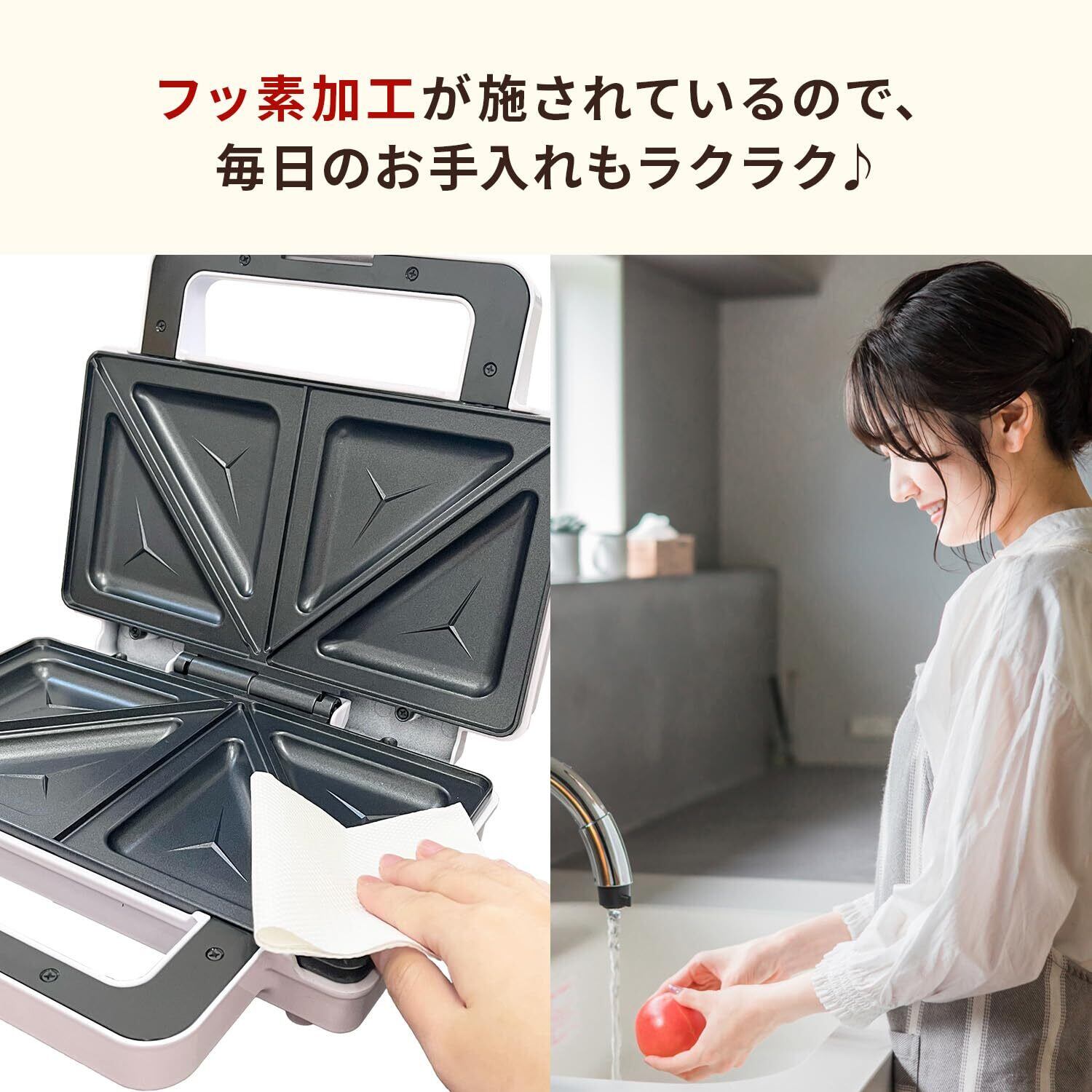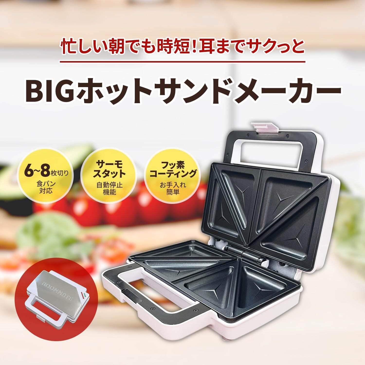 東京Deco 耳まで焼ける ビッグなホットサンドメーカー ホワイト 一度に2個 フッ素コートプレート サンドイッチ マシン i001