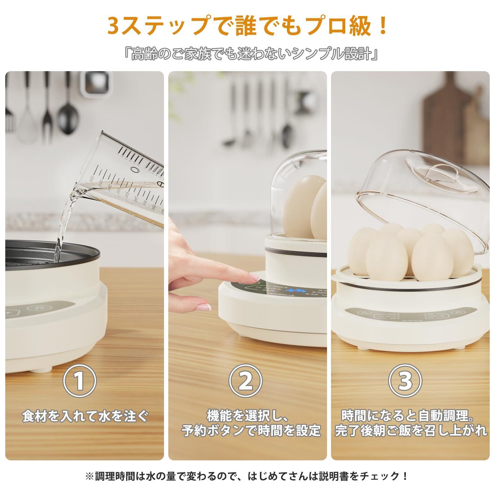 ゆで卵メーカー エッグクッカー 7個 自動 保温機能 12時間予約機能 多機能 半熟卵 固ゆで卵 茶碗蒸し 蒸し料理 蒸し器 フライパン 自動調理 BPAフリー PSE認証済 簡単操作 家庭用 (ベージュ)