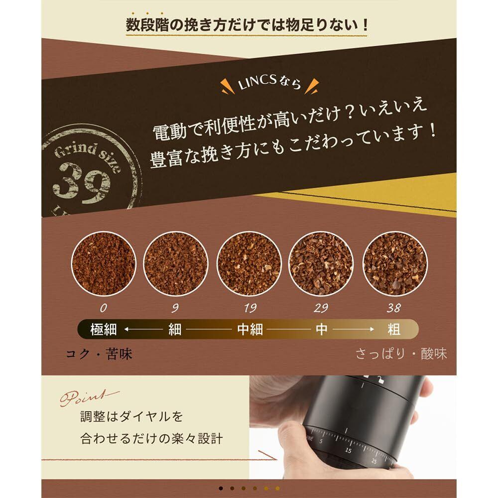 LINCS 電動コーヒーミル 39段階 臼式 自動停止 コードレス 水洗い可能 リンクス ONE SECOND