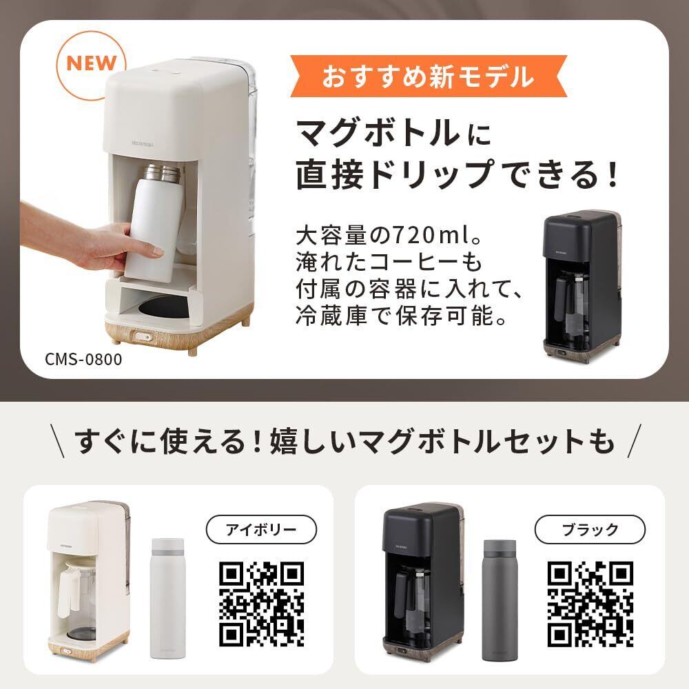アイリスオーヤマ コーヒーメーカー ドリップ式 720ml 6杯分 マグボトルに直接ドリップ 一人暮らし オフィス 出勤時 コーヒーサーバー付き 幅15.1cm マグボトル対応 水筒 ホット・アイス対応 CMS-0800-C アイボリー 木目