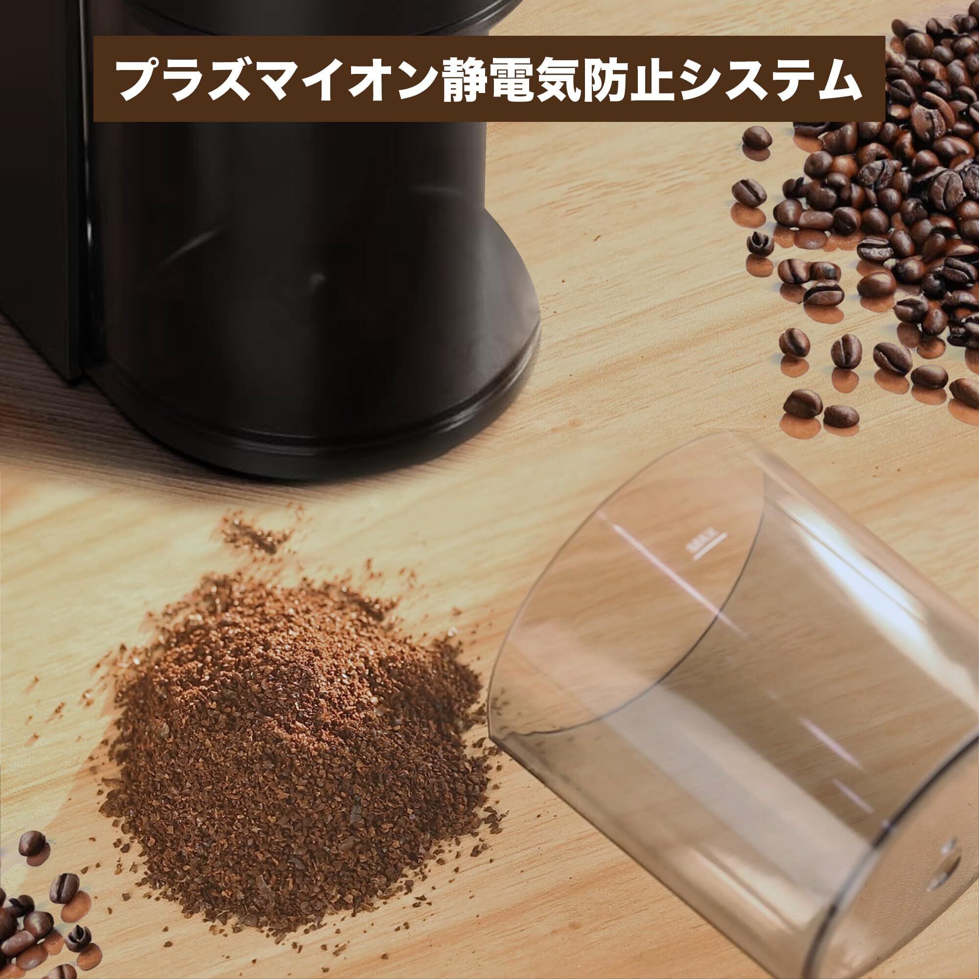 【静電気防止】静電気防止機能により静電気の発生を最小限に抑え、新鮮に挽いたコーヒーが容器内に留まり、散らかることを防ぎます。