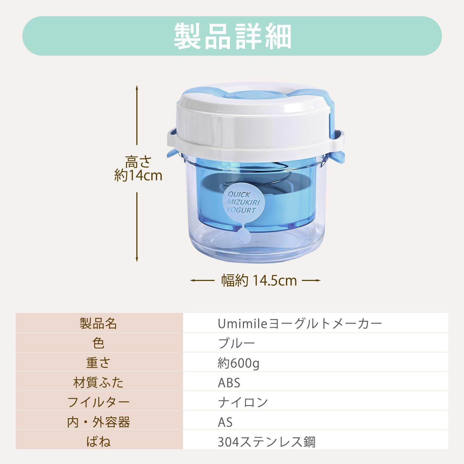Umimileヨーグルトメーカー 水切り ヨーグルト 1時間でできる フィルター不要 お手入れ簡単 グリークヨーグルト コンパクト 健康 豆腐 野菜 お菓子作り 製菓