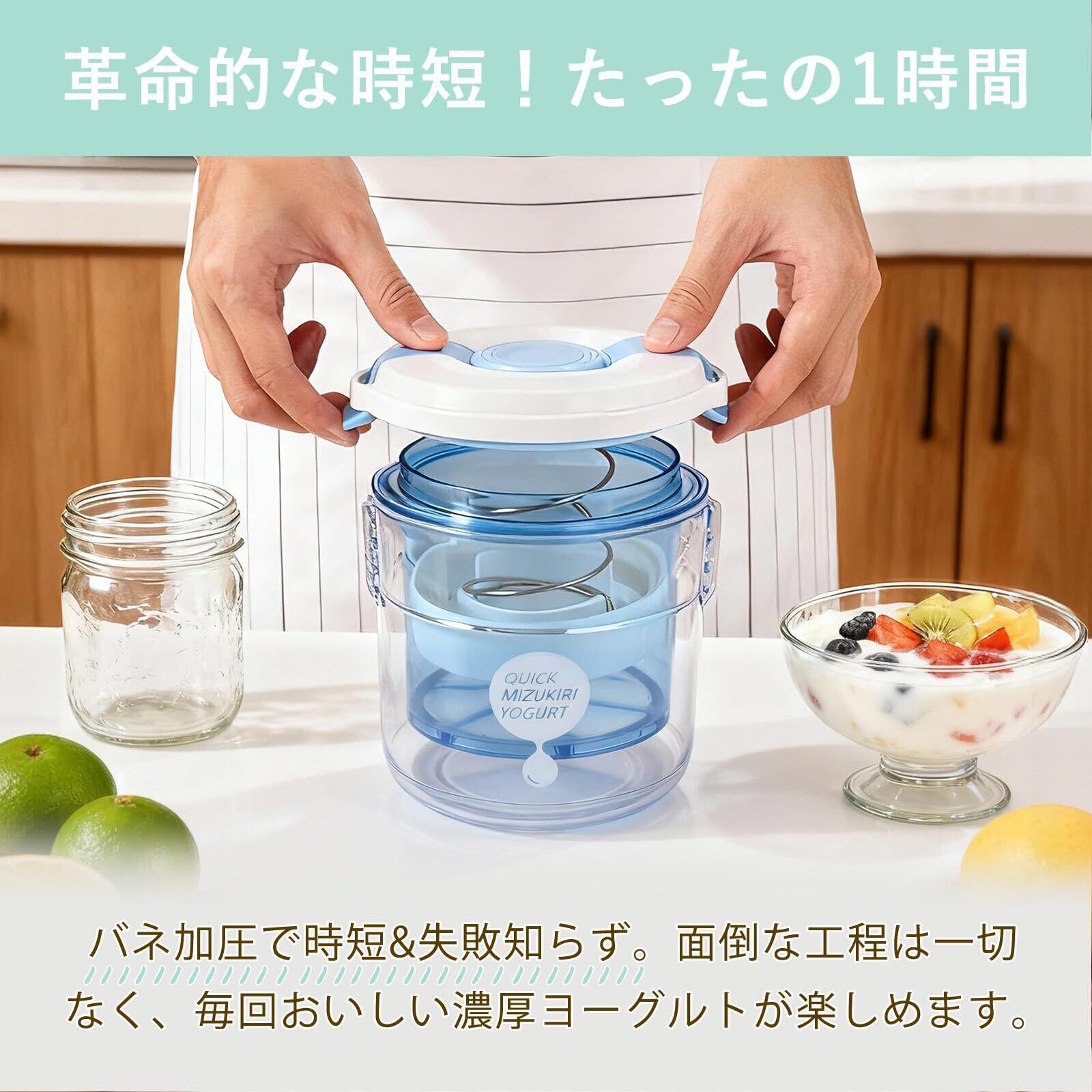 【新登場✨バネ式3段階調節のヨーグルトメーカー!】専用の強力バネが圧力を自動調整。「ヨーグルトの水切り」 時間を短縮し、わずか1時間でお好みの固さに仕上げます。初心者でもプロ級の濃厚食感を簡単再現!