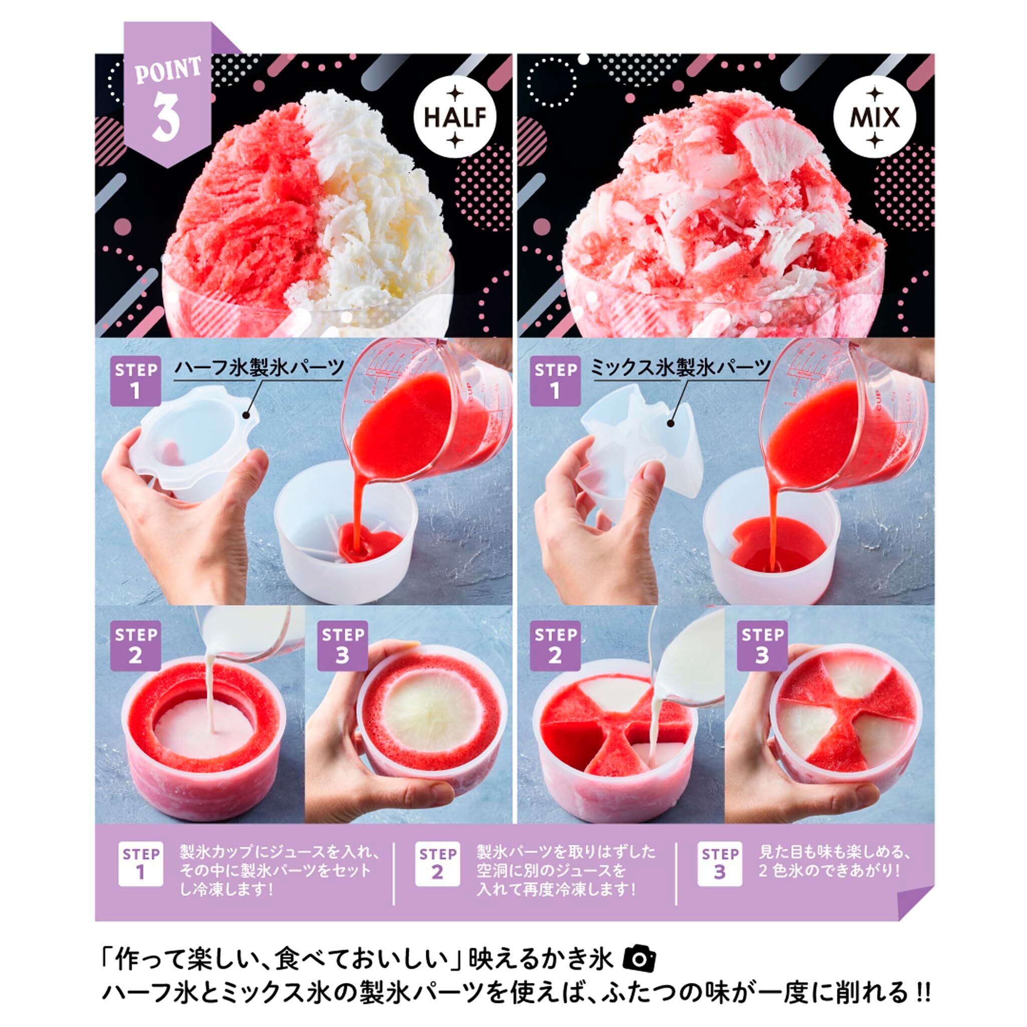 市販の冷凍フルーツやジュースや牛乳を凍らせた味付き氷にも対応! 公式HPにはオリジナルレシピ掲載中!暑い日にぴったりの涼しいデザートにもお料理のワンアクセントにも◎