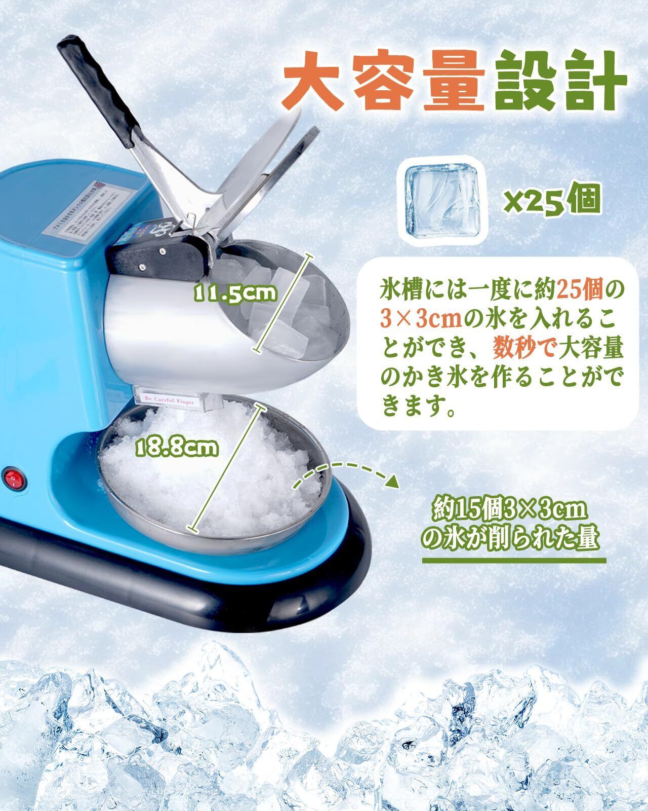 小型業務用かき氷機 家庭用 350W高パワー 85kg/h砕氷量 10cm高出氷口 安全ロック付き 多形状氷対応 日本語説明書付き