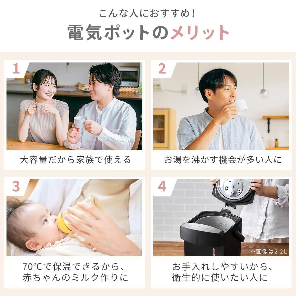 アイリスオーヤマ 電気ポット 3リットル 中の状態が一目で分かる 小型 マイコン式 保温調整 4段階 安全ロック カルキ抜き機能 お手入れ簡単 ブラック IAHD-230AZ-B 3l
