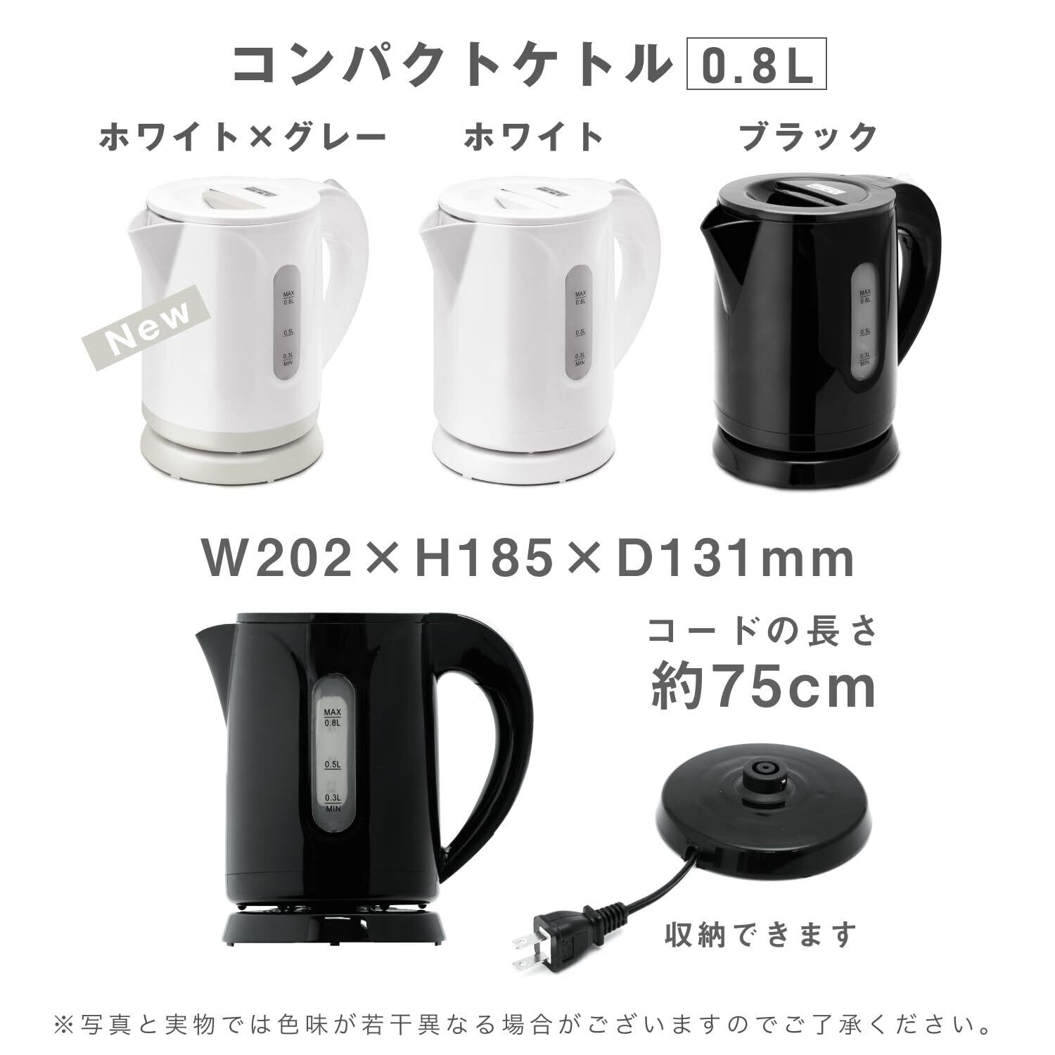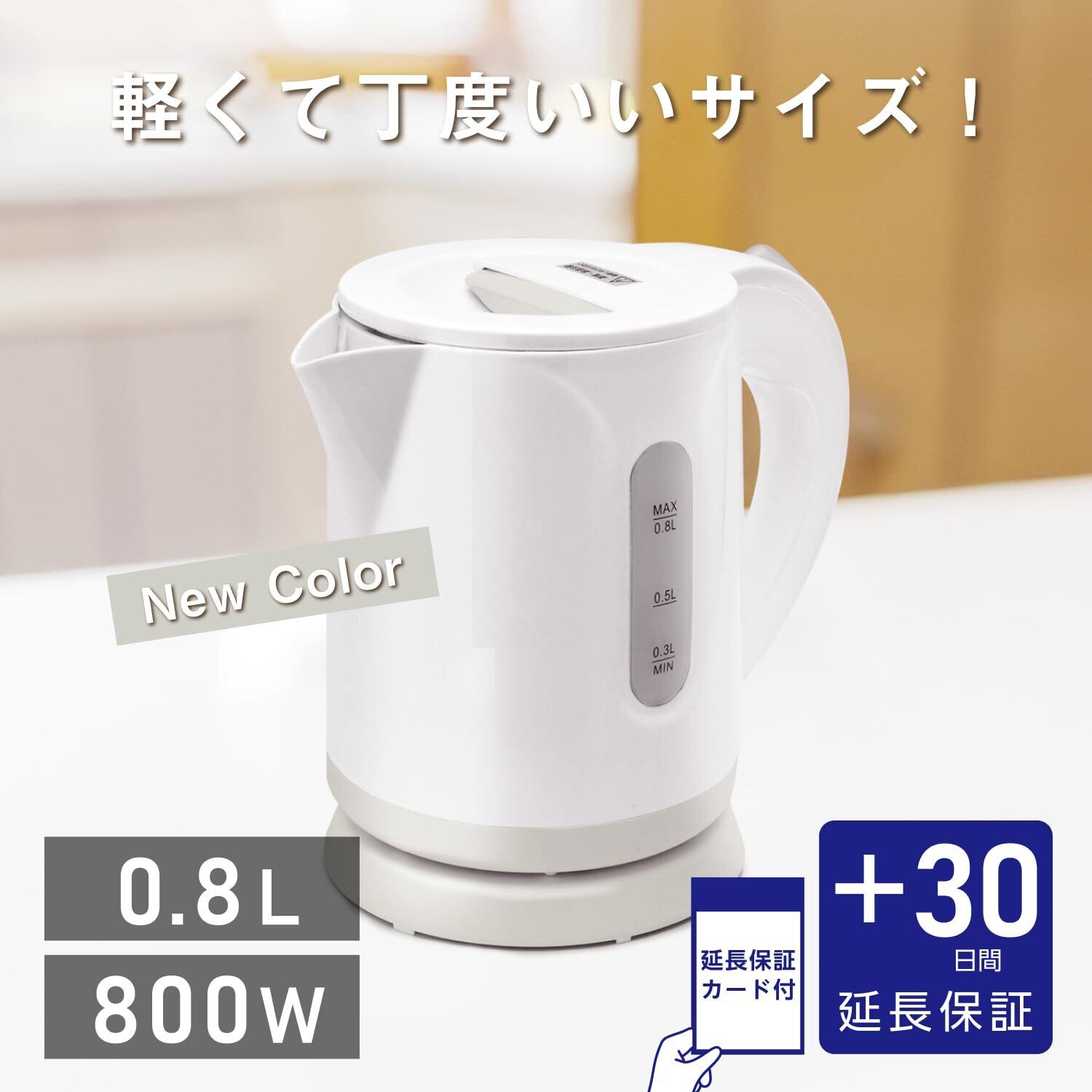 イトウ 電気ケトル コンパクトケトル 小型 0.8L 800W 自動電源OFF 空焚き防止 軽量 ホワイト×グレー