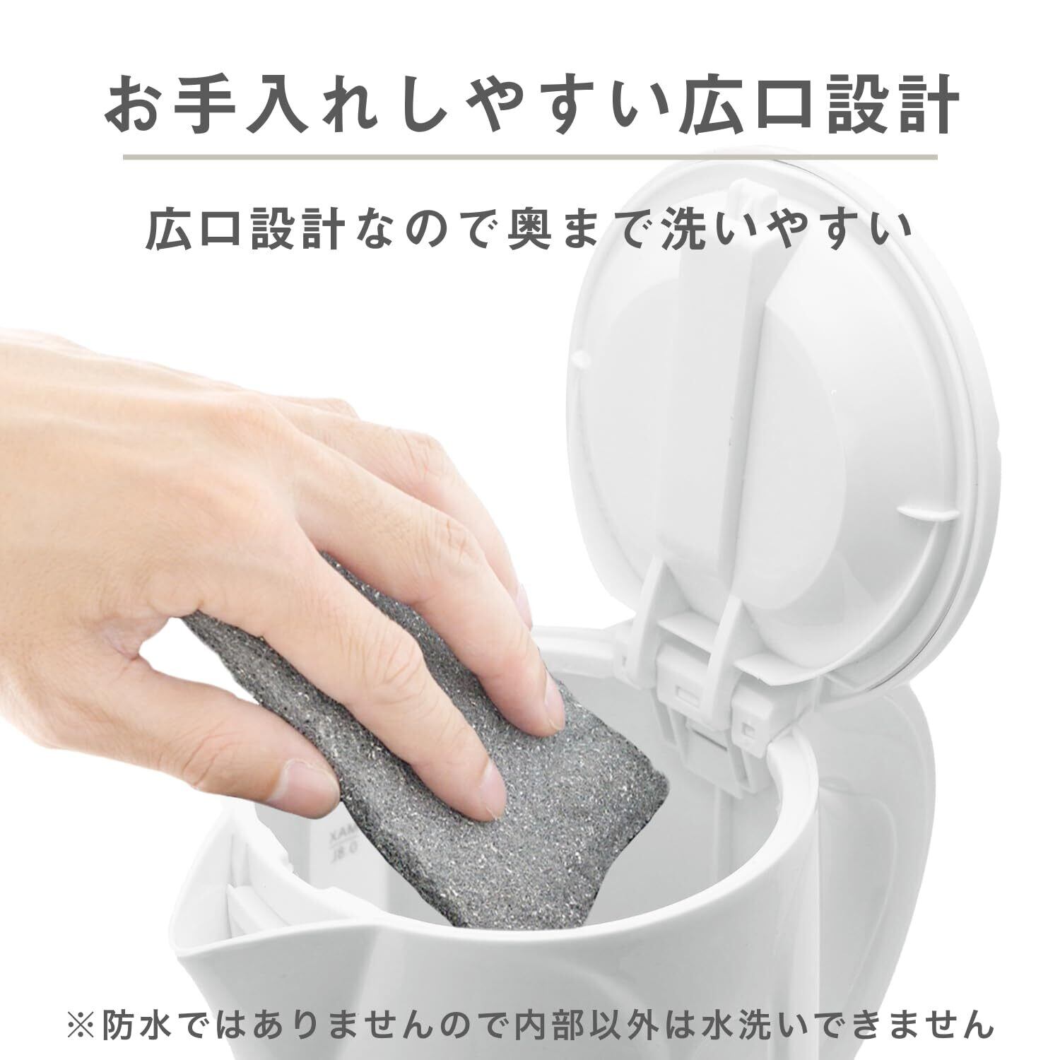 広口設計なので内部が洗いやすい。(※防水ではありません)
