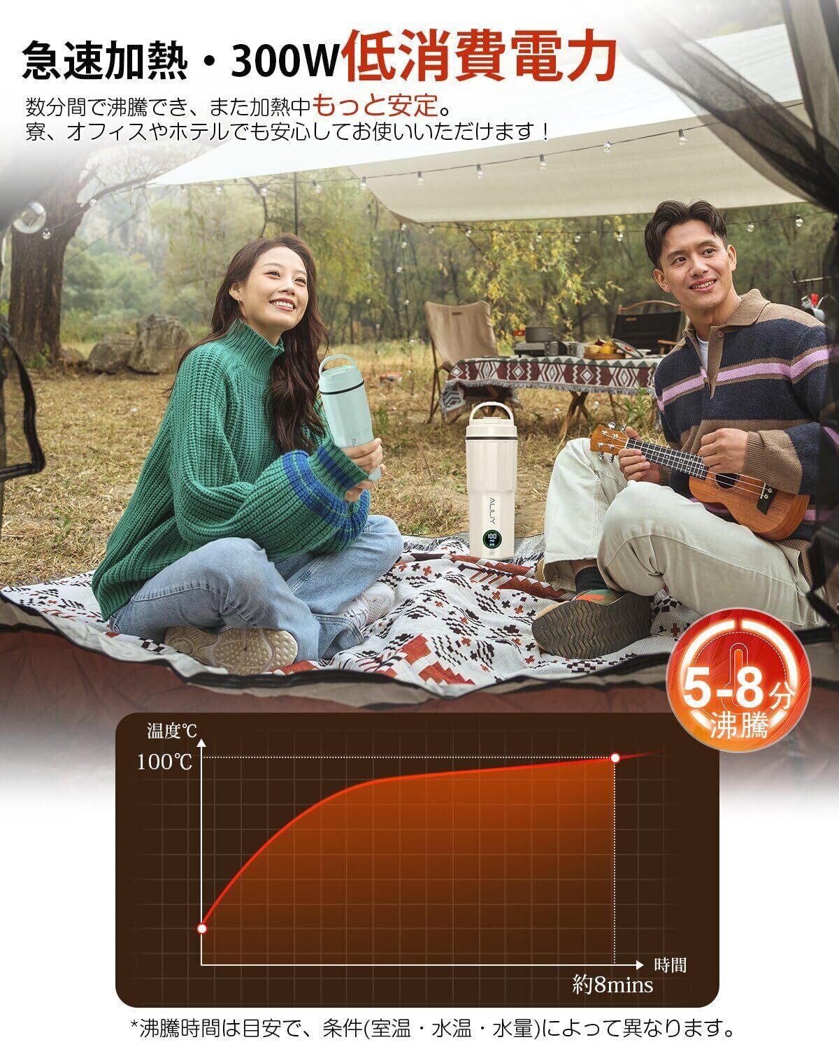 Aliliyポータブル電気ケトル温度調節 海外/日本対応 AC100-240V トラベルケトル 400ML 小型 携帯 300W 湯沸かしケトル 保温 キャンプ・宿泊・トラベル・出張・車中泊・オフィス対応 持ち運びケトル 電気ポット お湯・コーヒー・お茶・粉ミルク 水筒 一人用 ステンレス ギフト 二重構造 空焚き防止 PSE認証済み 2年 (ベージュ)