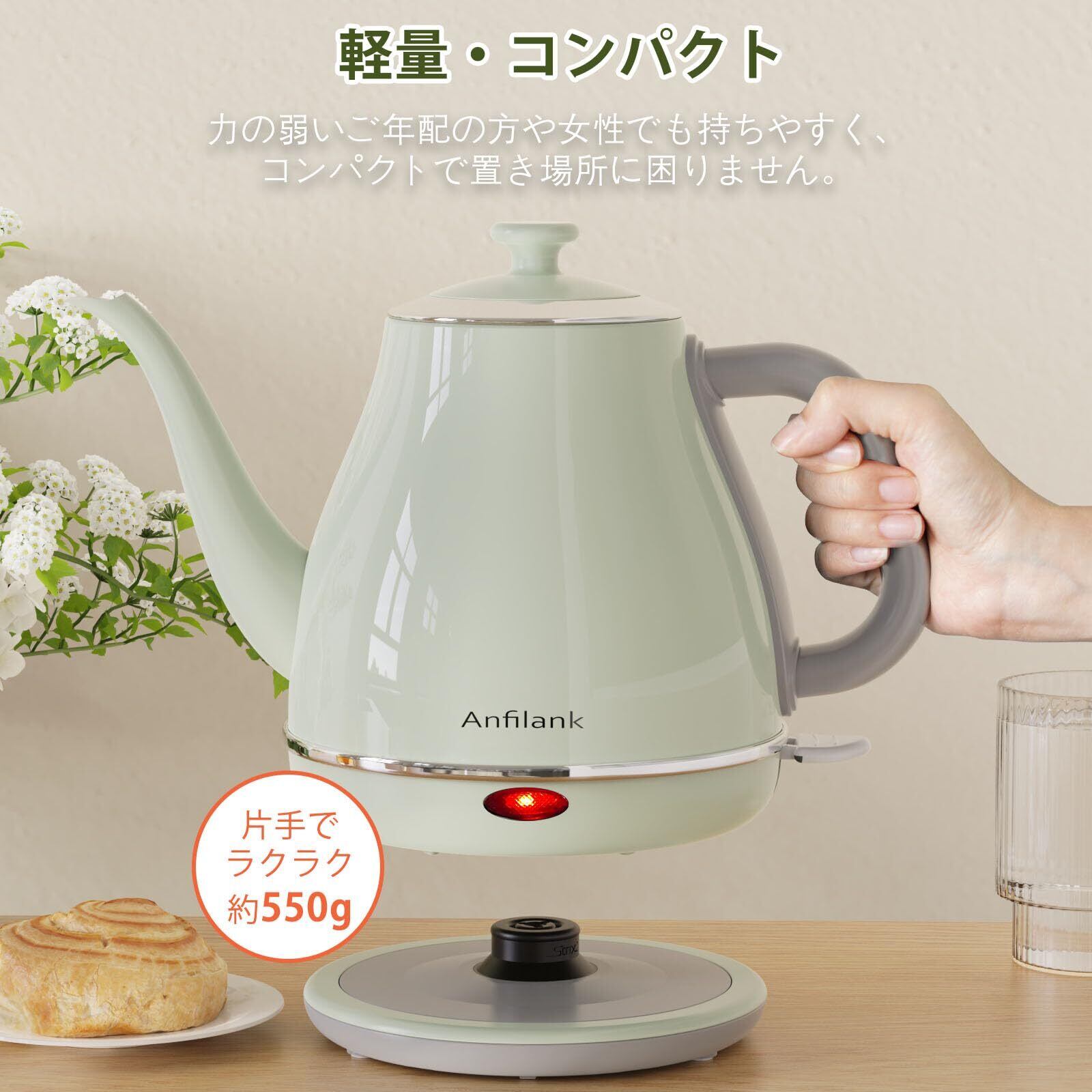 【304食品級電気ドリップケトル】Anfilankの湯沸かしポットは304食品級ステンレス採用するのに、錆にくく清潔感有り、耐食性強く、沸騰とともに有害物が生じません。【使いやすい広口タイプ】水注入口が広口で、給水しやすいです。フタが取り外せるものや、つぎ目のない内部構造、丸ごと洗える電気ケトルは、お手入れが簡単で便利です。