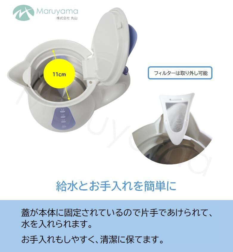 電気 ケトル 1.2L 少量 湯沸かし 自動OFF ホワイト ブルー MAK-900