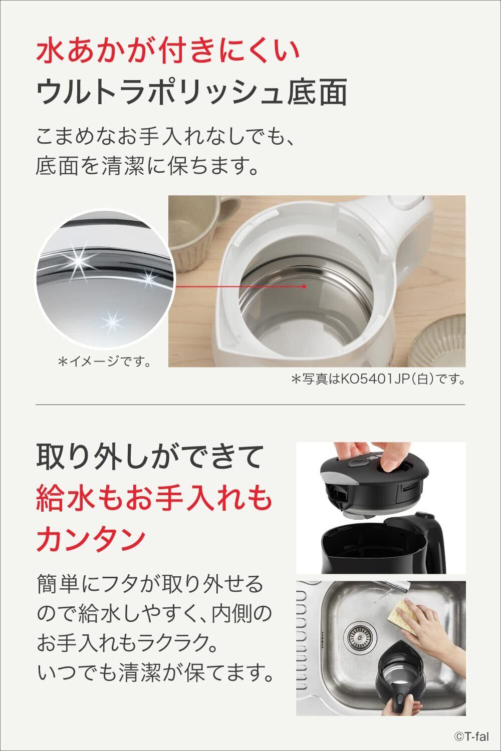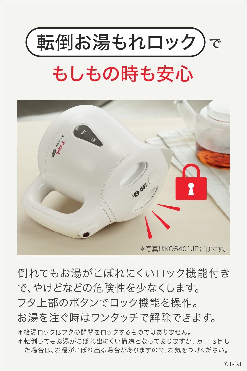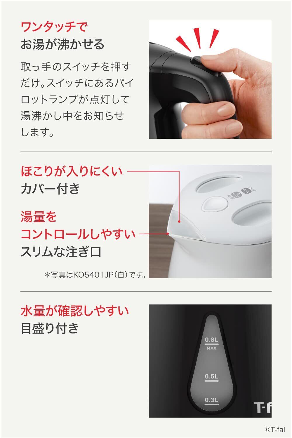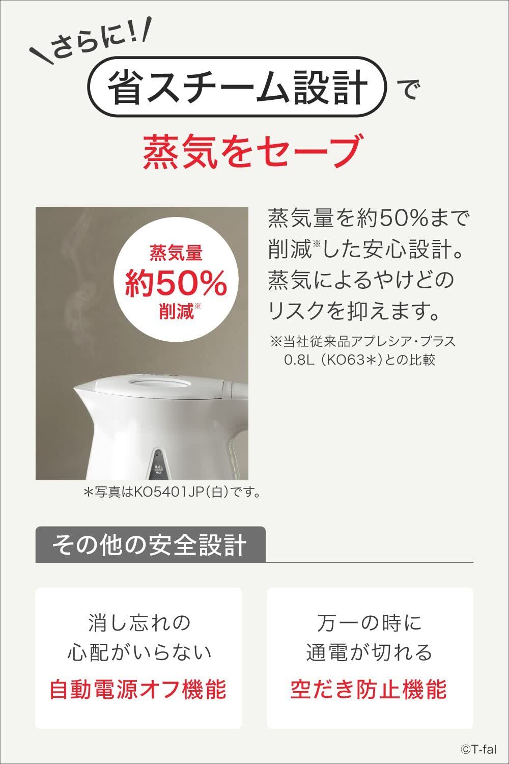 ティファール 電気ケトル 0.8L 転倒お湯もれロック 省スチーム設計 KO5408JP