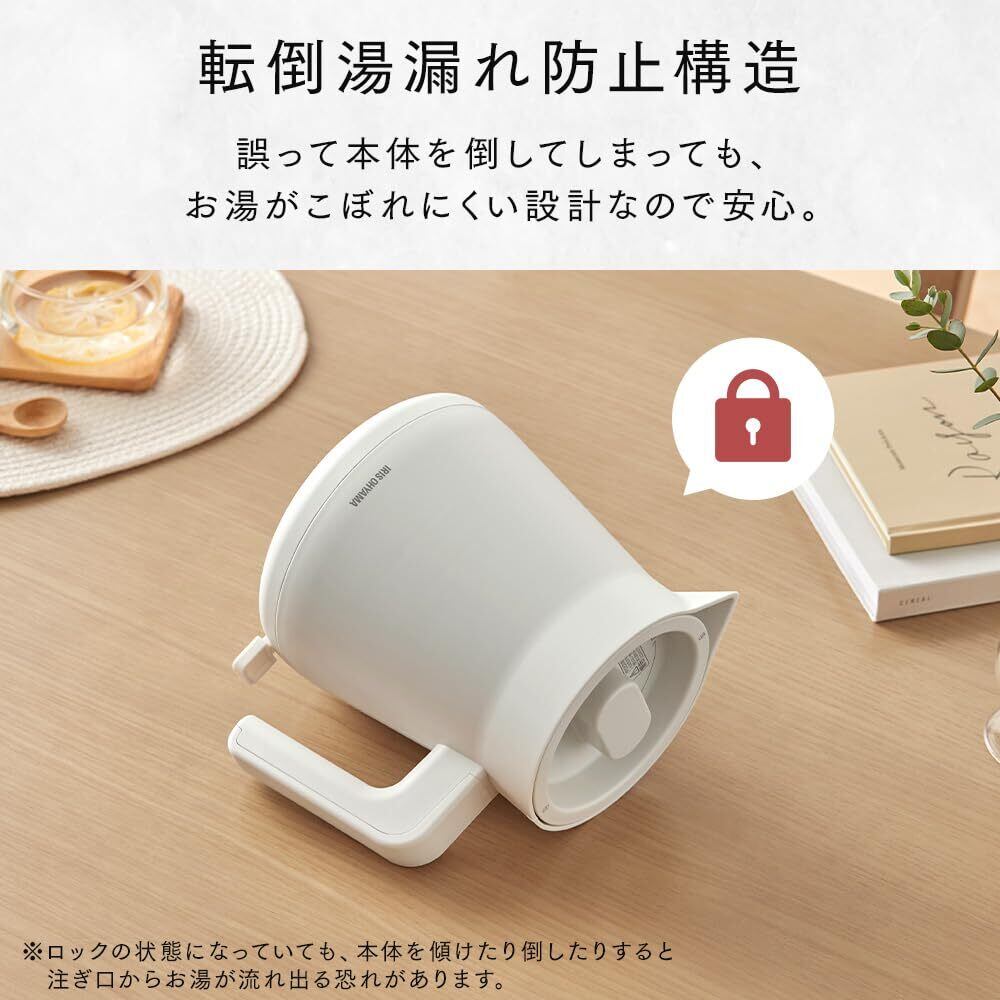 アイリスオーヤマ 電気ケトル 800ml 1250W スピード沸騰 空焚き防止 自動電源オフ 安心安全 シンプル お手入れ簡単 ホワイト IBKT-800-W