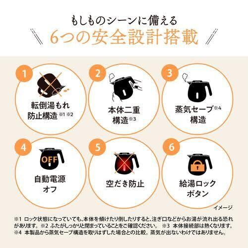 シンプル機能でベーシックな電気ケトル。ベーシックながらも6つの安全設計を搭載しており、使いやすさと安全性を兼ね備 えています。