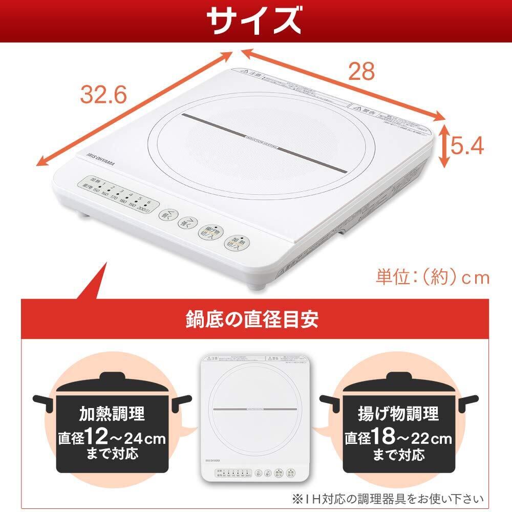 アイリスオーヤマ IHコンロ 1口 IHクッキングヒーター 1400W ホワイト IHK-T35-W