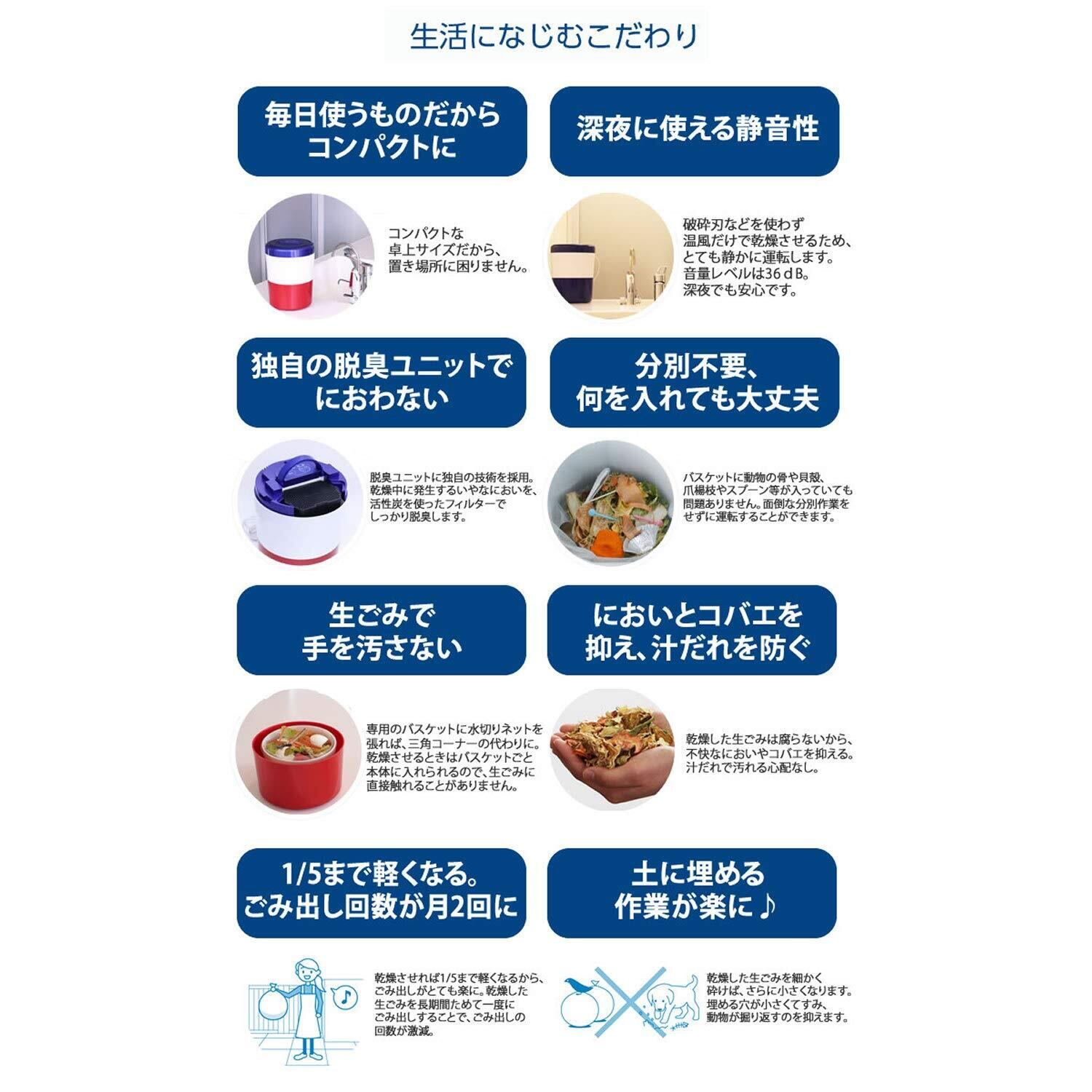 処理方式:温風乾燥式、運転音:約36デシベル(※試験機関 香川県産業技術センター)