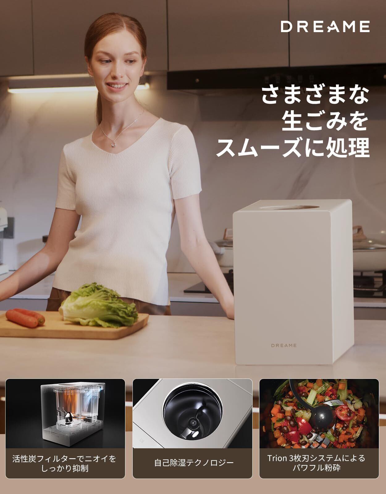 dreame (ドリーミー) SF25 生ごみ処理機 2.5L AI制御 乾燥×粉砕方式 静音設計 洗浄モード搭載 省スペース 補助金対象
