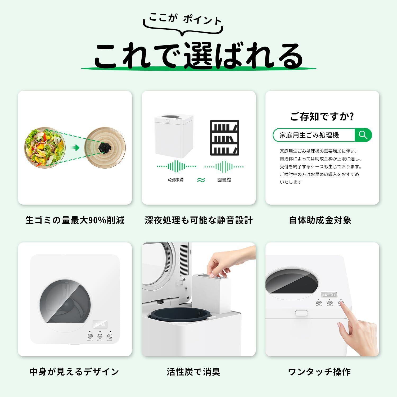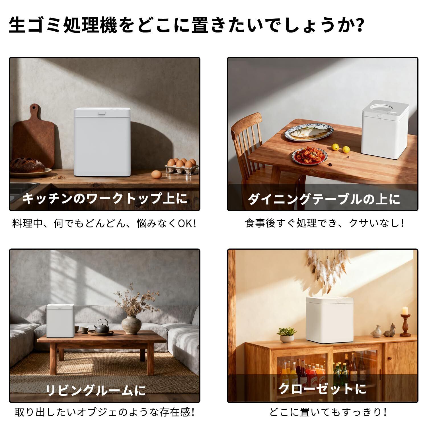 生ゴミ処理機 家庭用 ディスポーザー 透明窓付き 静音 自動洗浄 コバエ対策 臭い対策 一人暮らし~2 人 1 日分 / 3~4 人 1 食分 乾燥粉砕 フードロス削減 生ゴミ減量 梅雨対応 日本語説明書付き ホワイト