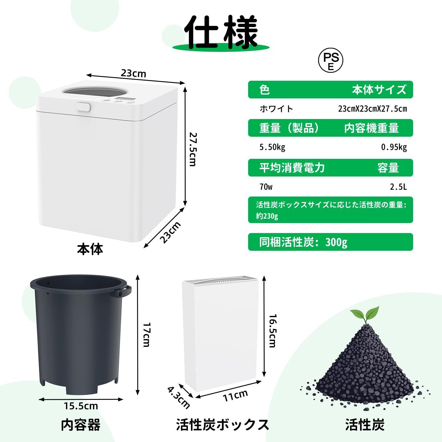 【1~2人暮らしにぴったりの容量】 一度に約2.5Lの生ゴミを処理可能。1~2人暮らしの方には、1日分の生ゴミを手軽に処理でき、3~4人暮らしの場合は1食分の生ゴミに最適です。コンパクトな設計なので、キッチンにすっきりと置け、スペースを有効活用できます。 さらに、毎日の料理を楽しむために、簡単に生ゴミを処理できるこの機械があれば、清潔なキッチンを保つことができます。手間いらずで、環境にも優しい選択です。
